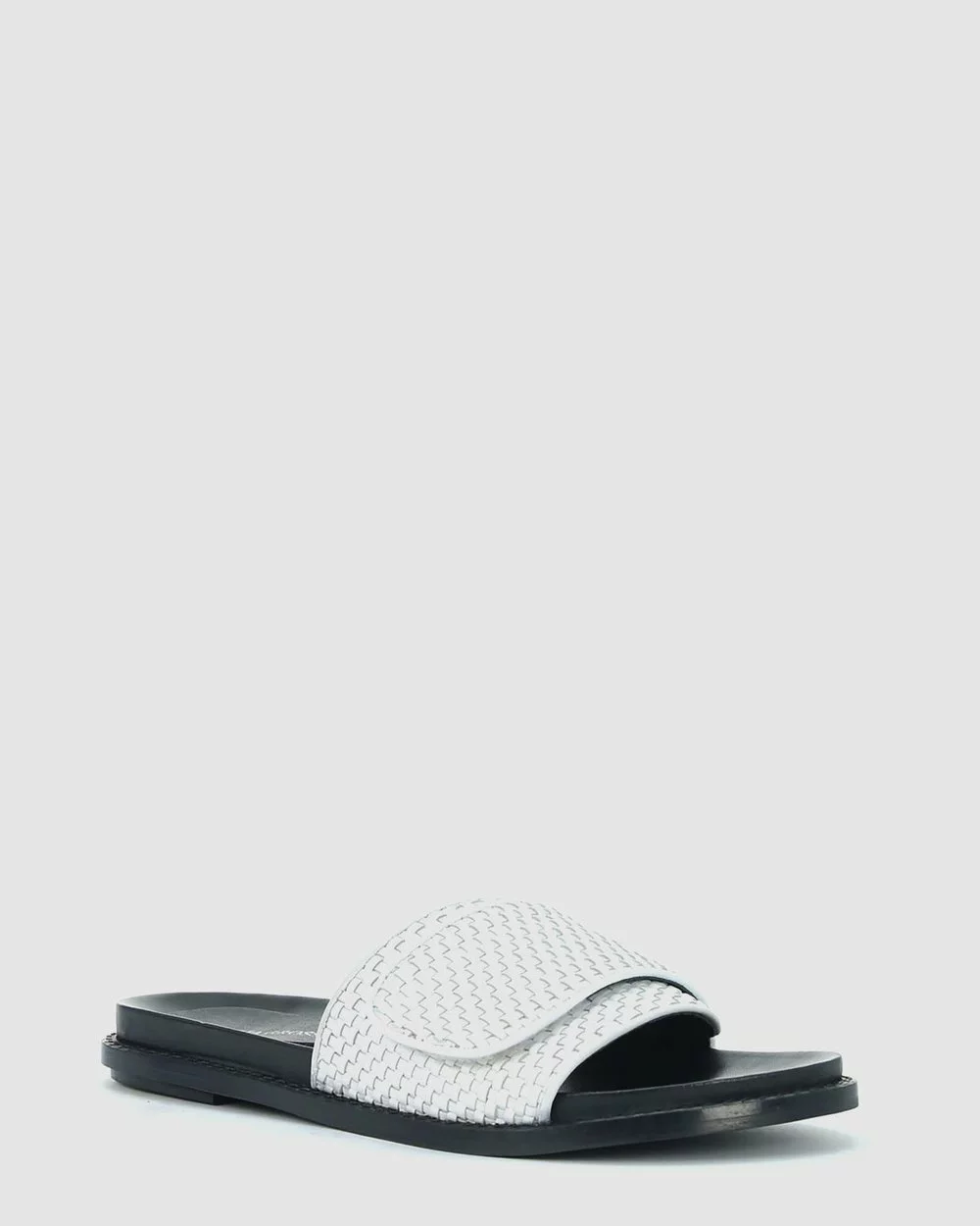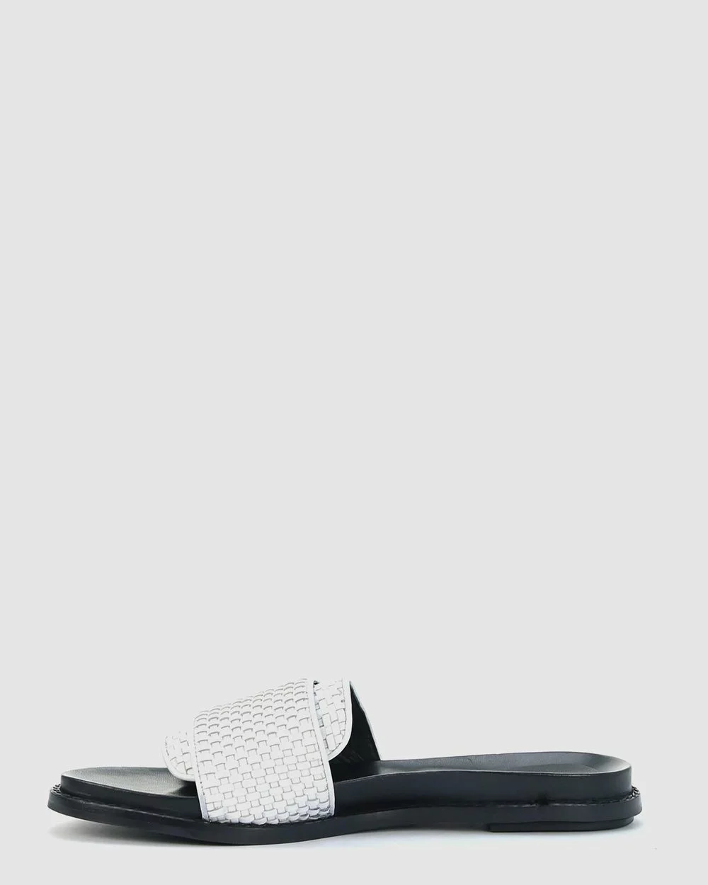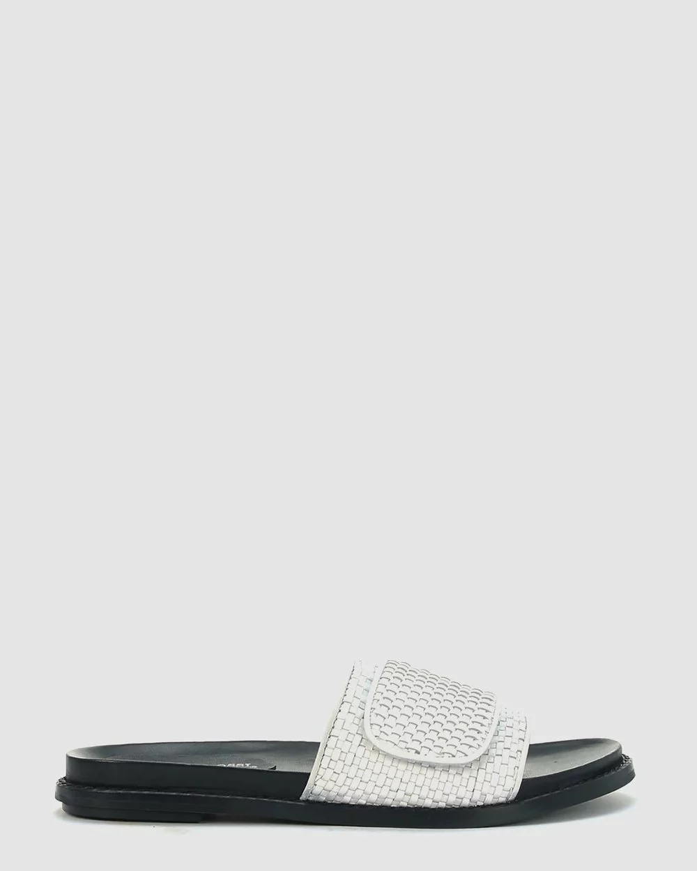 – 100% leather slide- Woven upper- Luxuriously soft and flexible footbed- Smart and edgy simple strap Heel Height: 25mmInner: LeatherSole: LeatherUpper: Leather