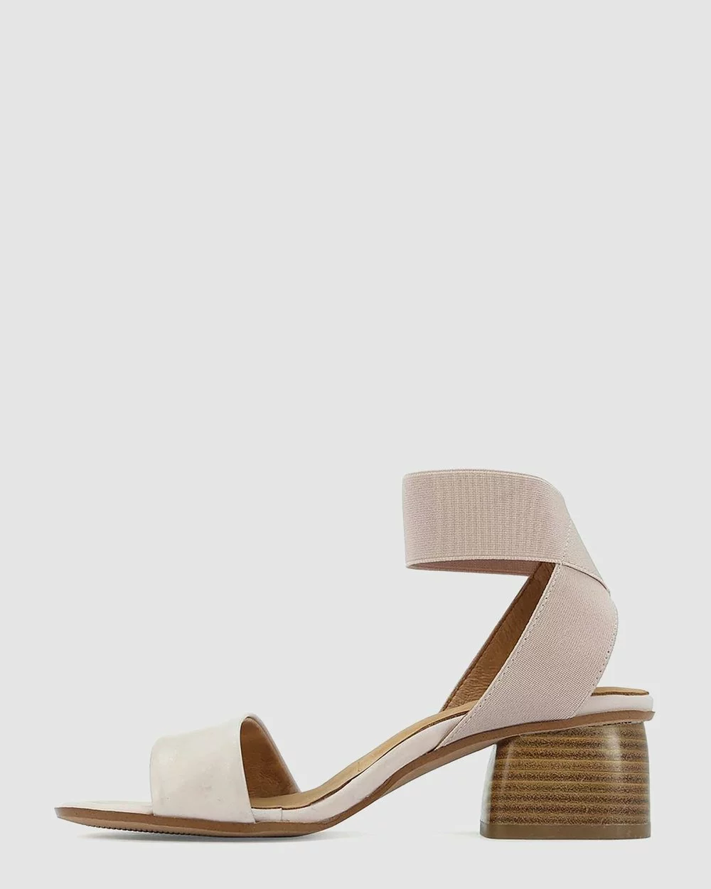 – Quality leather sandal by Portuguese heritage shoemakers. – Easy and supportive back in elastic ankle strap – Polished leather stack heel – Genuine leather padded sock- Open round toe
