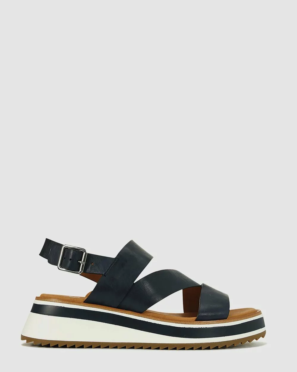 – Salpa leather rand – Casual sports sandal – Belt inked edges – Asymmetric sling back