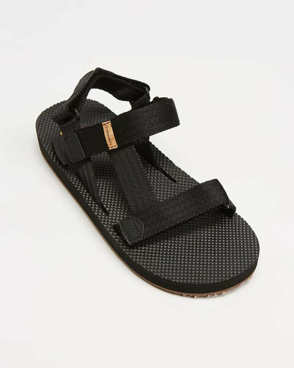 Freewaters' Supreem Sport sandals feature adjustable hook-and-loop straps across the foot, with an adjustable strap behind the heel that can be removed entirely to convert the pair to a simple slide when desired.