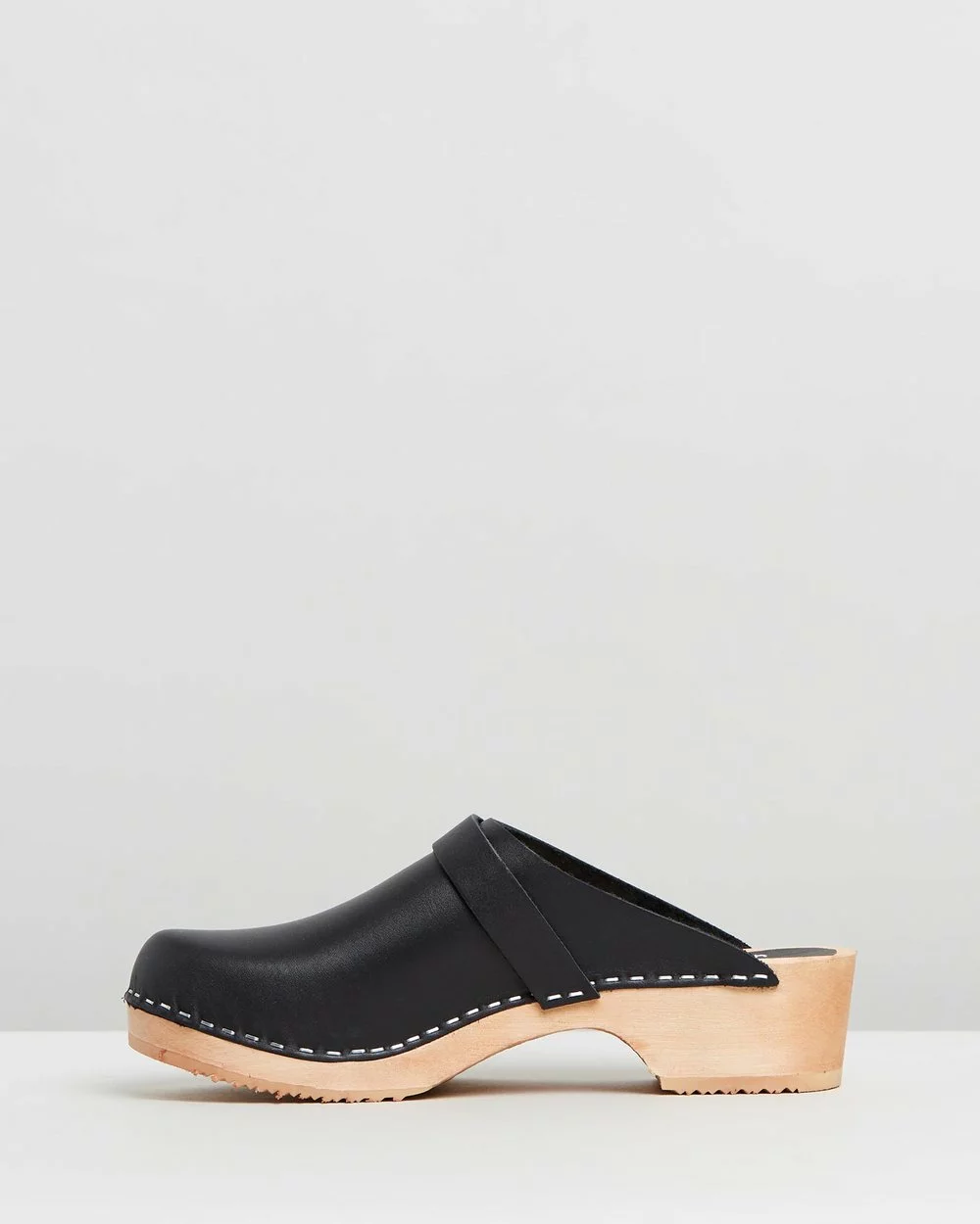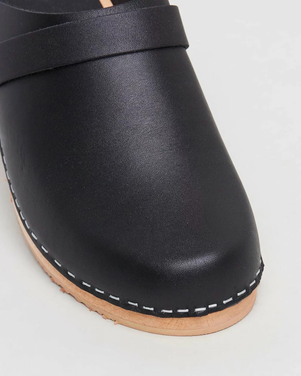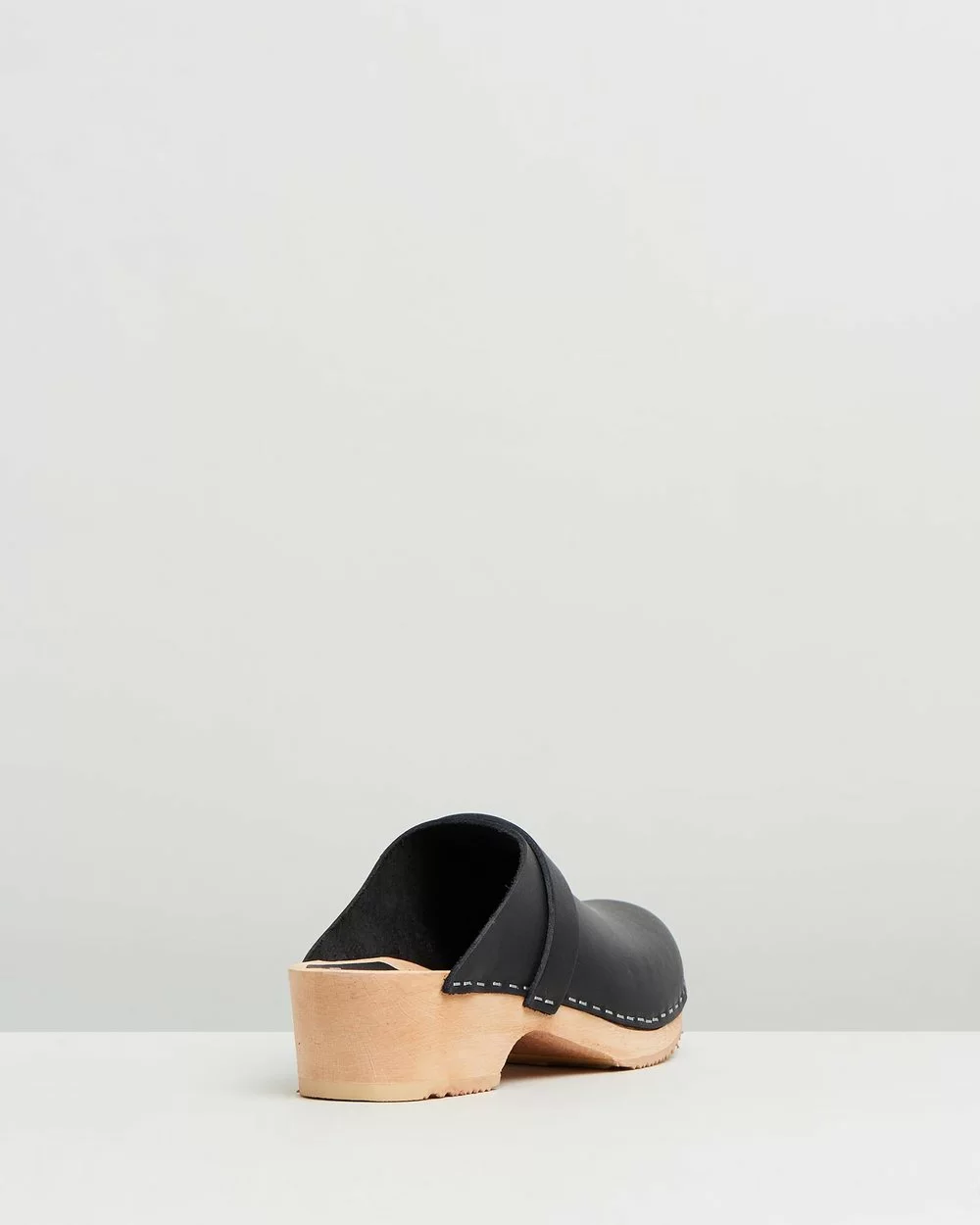 Crafted from smooth vegetable tanned leather, the 63 Classic Clogs from Funkis evince traditional Swedish design.
