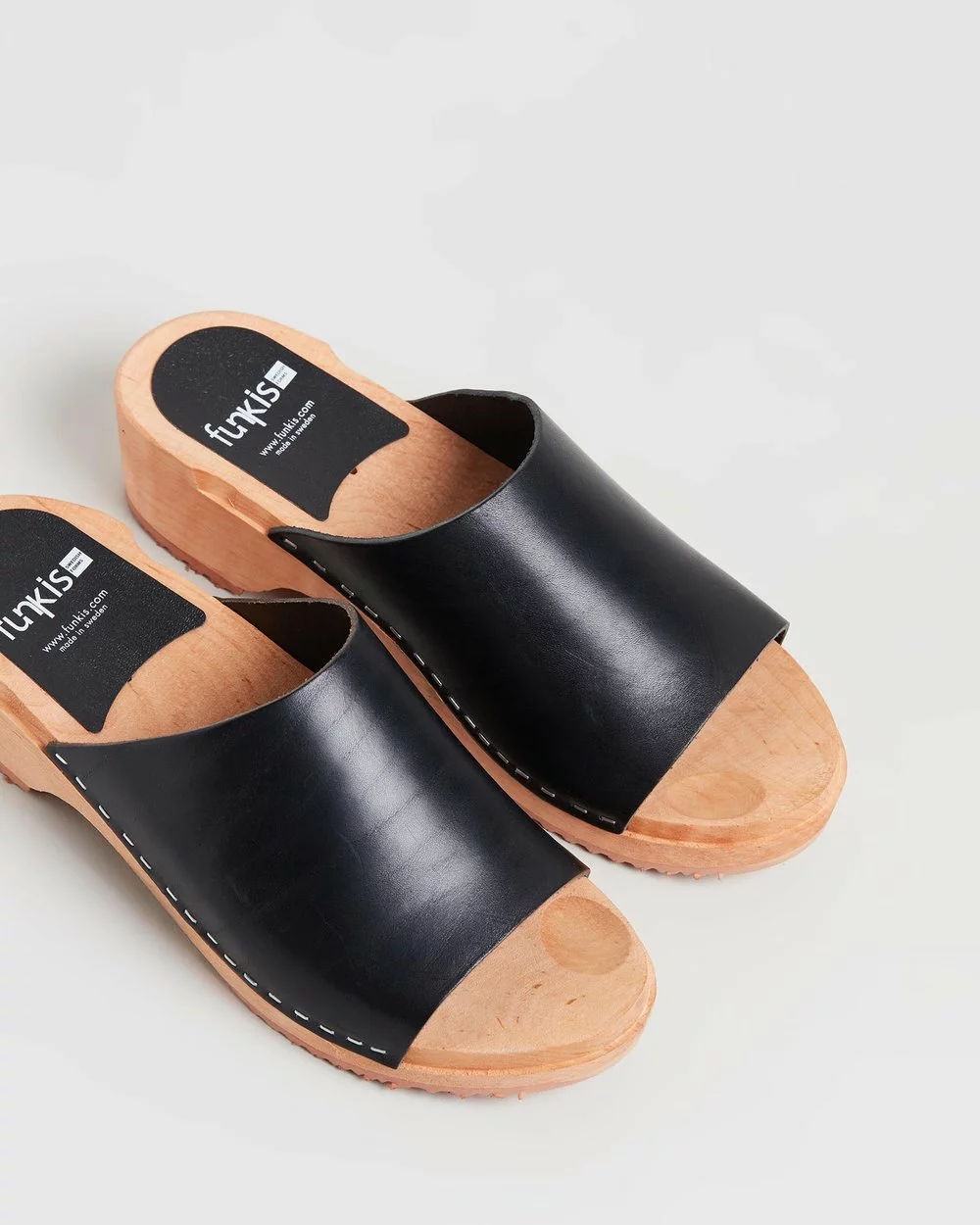 Crafted from smooth vegetable tanned leather, the 664 Juni Clogs from Funkis evince traditional Swedish design with a wood block heel.