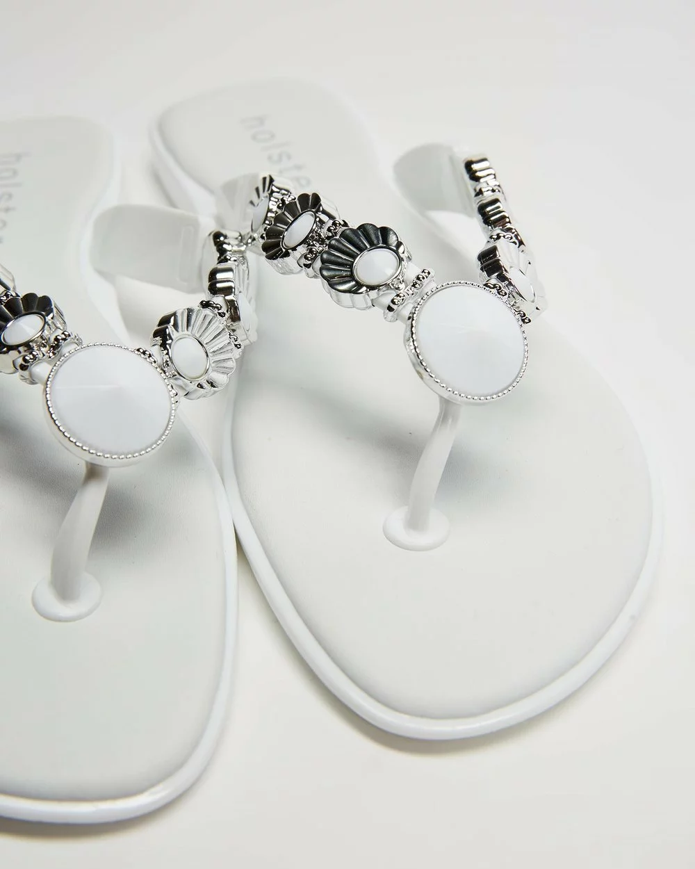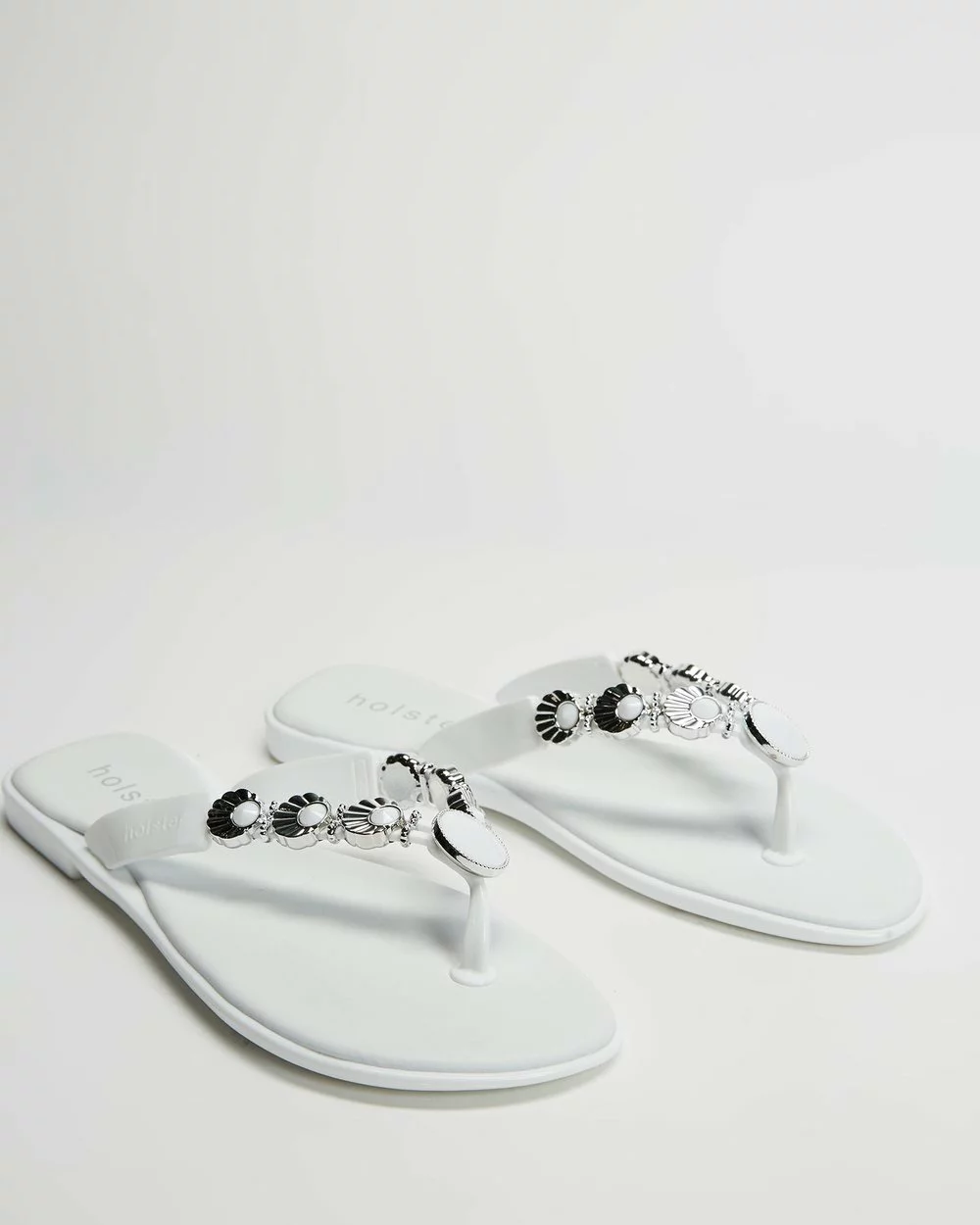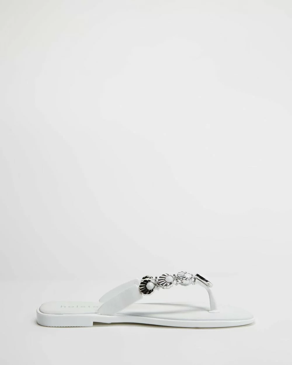 PETA-approved and 100% Vegan, Holster‘s Seascape sandals are a bejewelled take on the summer-ready thong silhouette.