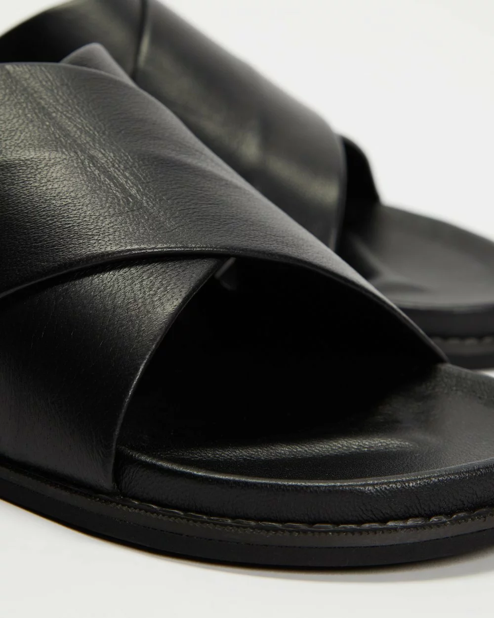 JAMES I SMITH‘s La Sponda Slides feature a smooth leather upper and a moulded footbed for all day comfort.
