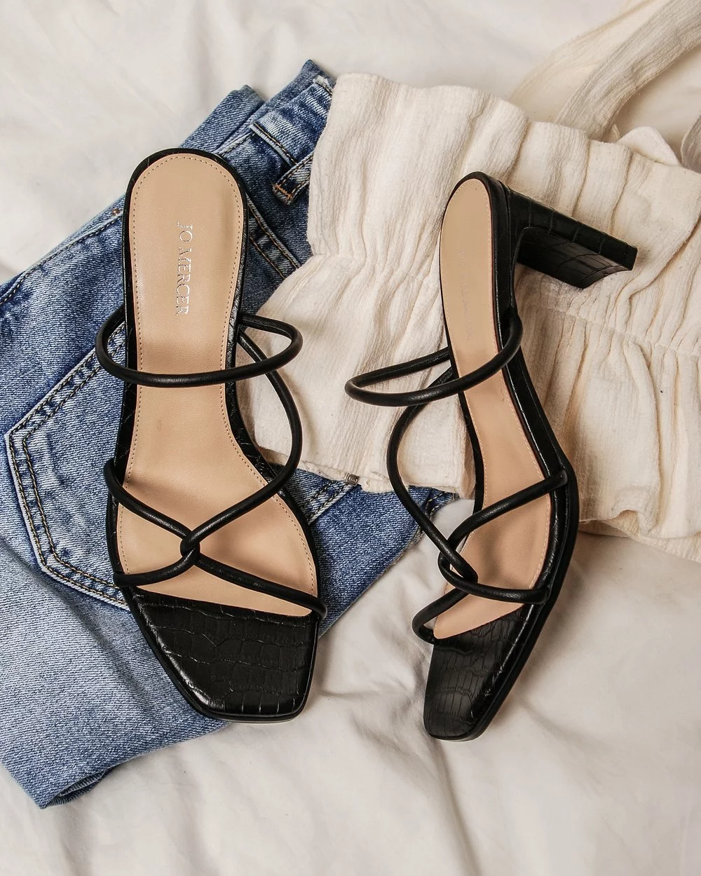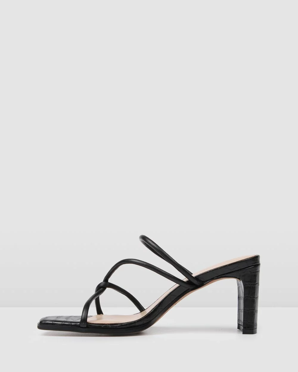 An Australian icon since 1998, Melbourne-based footwear label Jo Mercer is the cornerstone of any well-curated shoe wardrobe. The Novi Mid Heel Sandals showcase a contemporary design with a sculptural block heel and softly squared toe. This mid heel mule is crafted from genuine leather and features rolled leather straps for exuberant style.