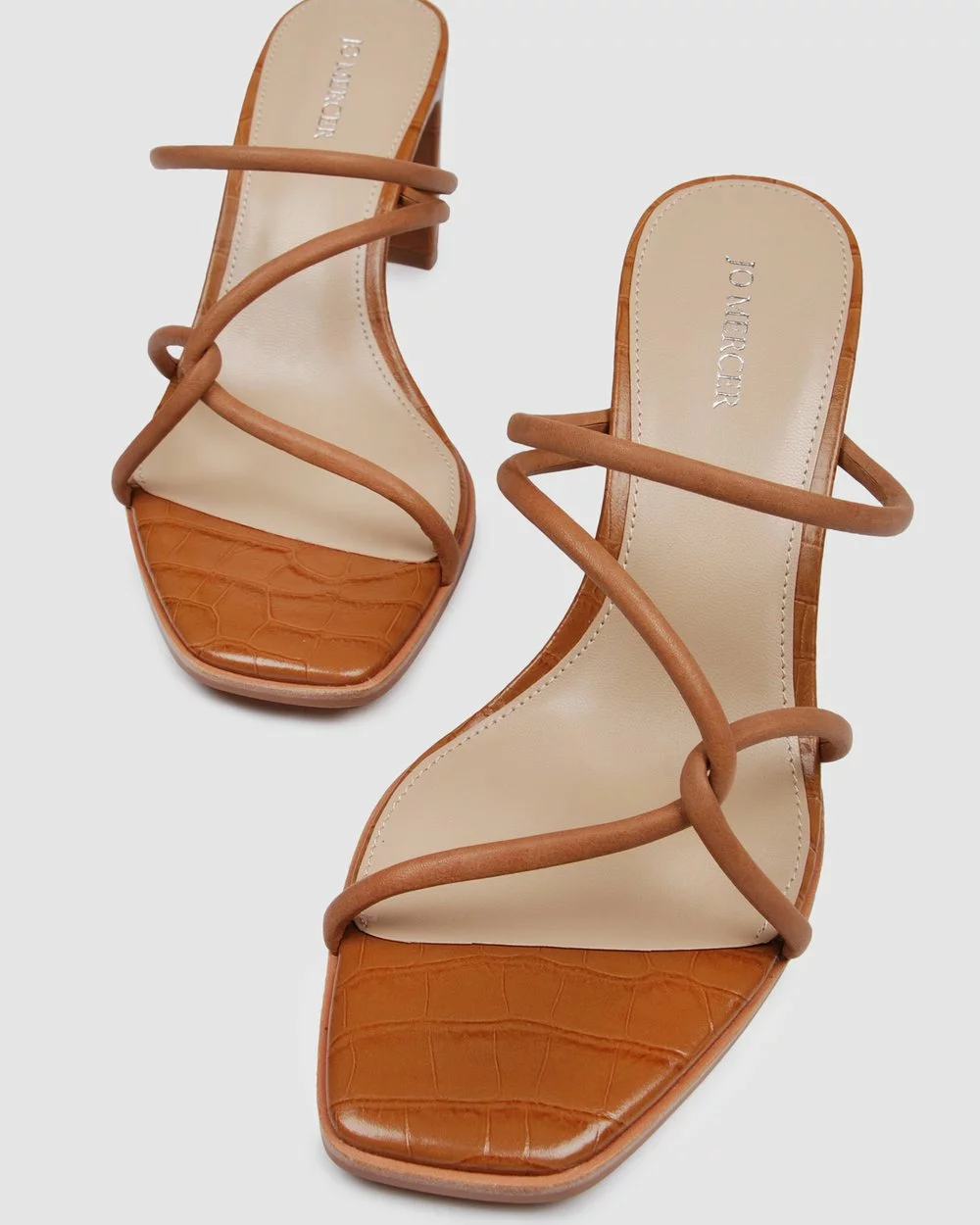 Jo Mercer Novi Mid Heel Sandals TanLeather