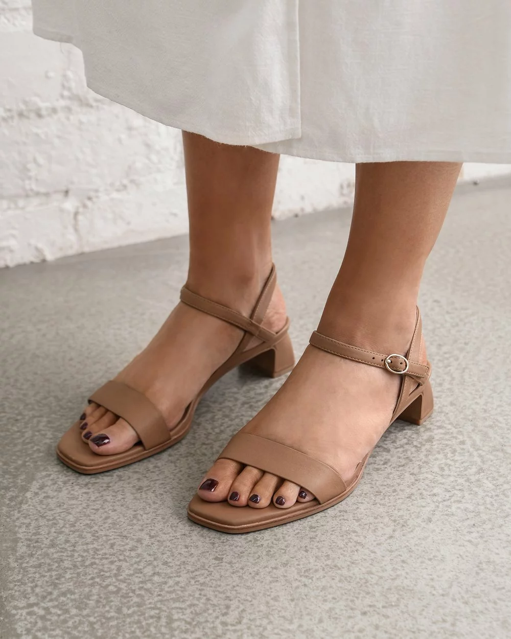 Jo Mercer Reina Low Heel Sandals TAN LEATHER