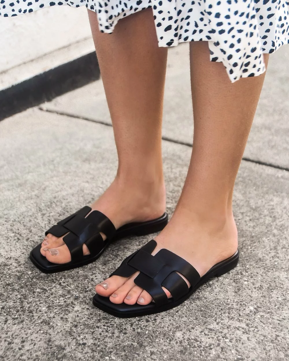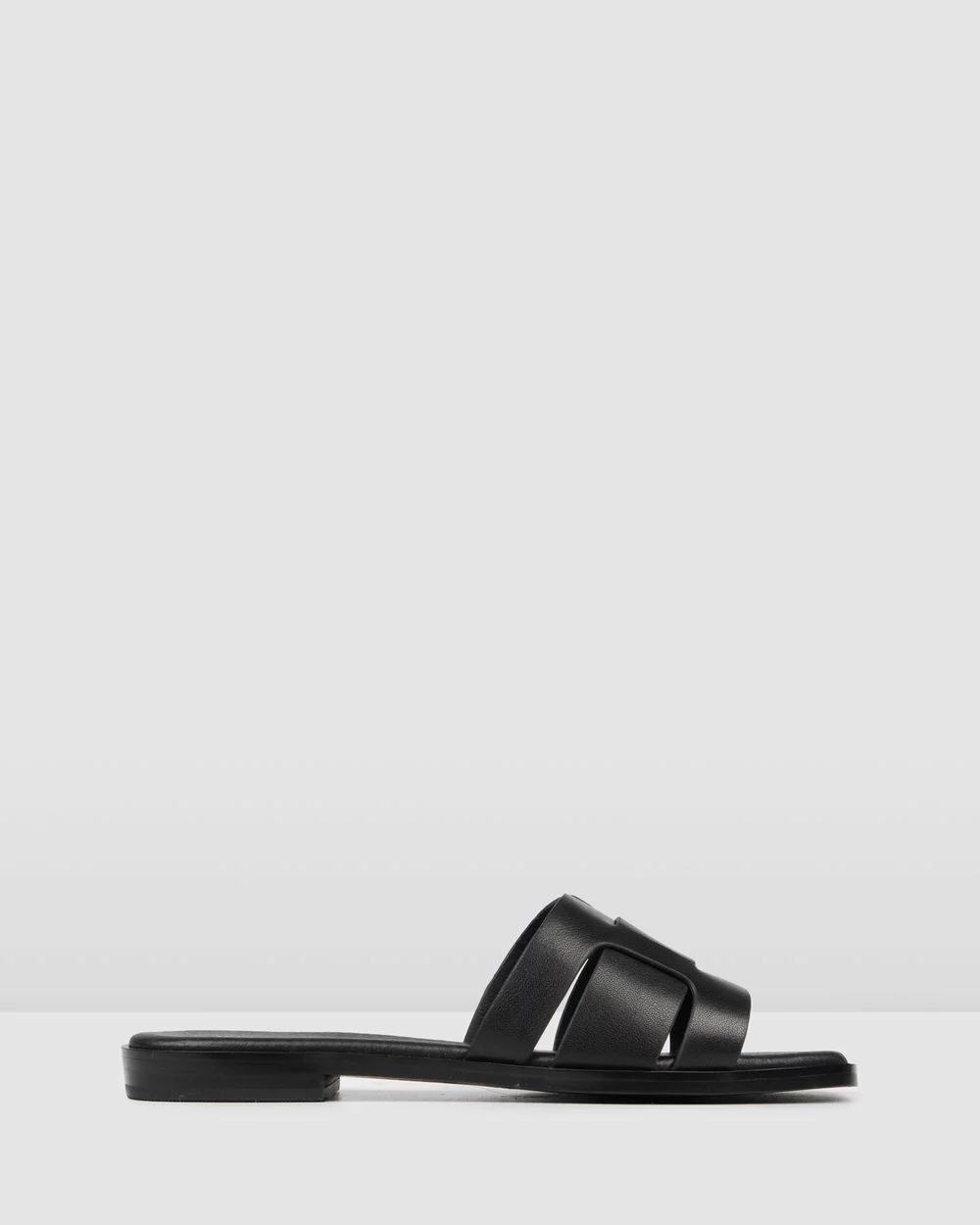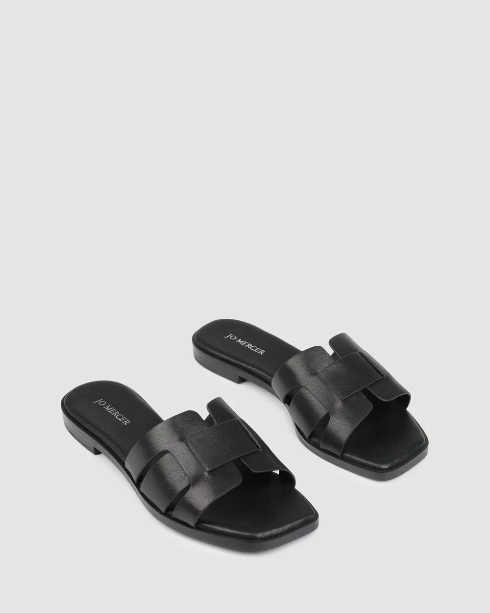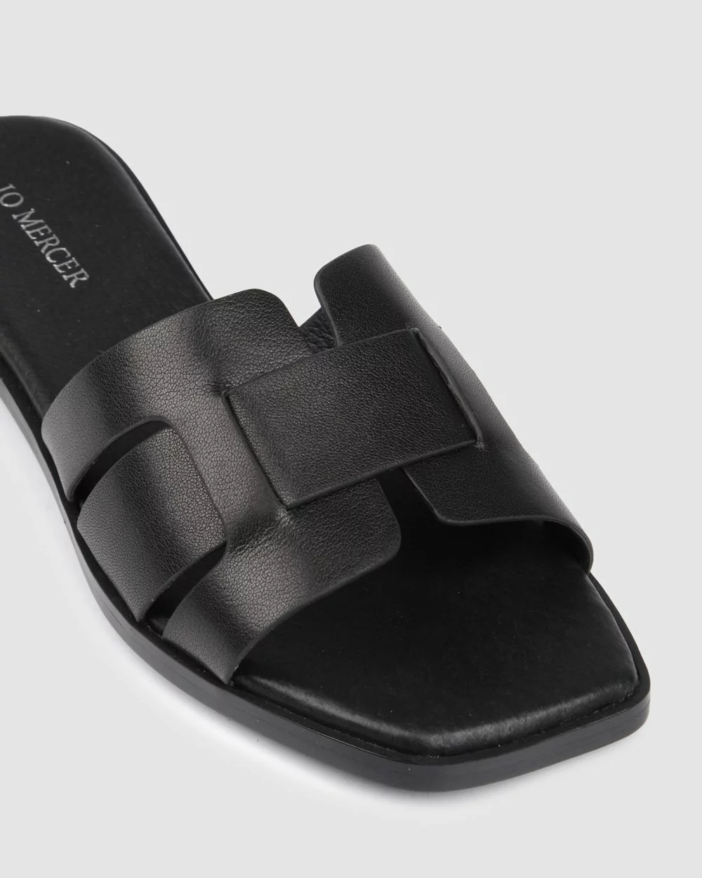 Jo Mercer Tara Flat Slides BLACK LEATHER