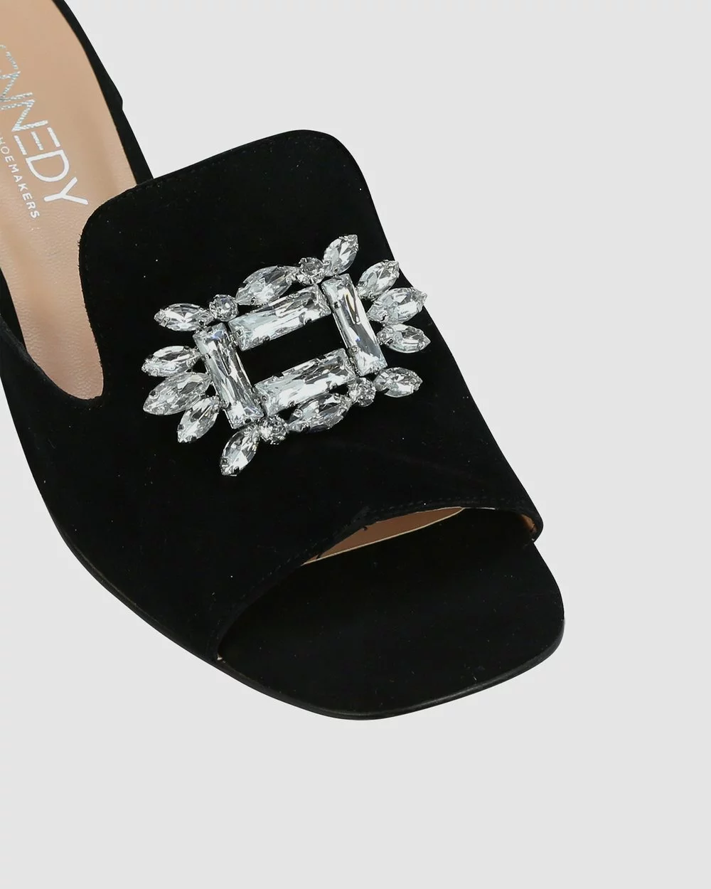 The Keltie from Kennedy Shoes is a class act. Stage manage your night out in these charismatic covered block heels that understudy their leading Albert topline and best supporting mule design before the virtuoso performance from our decorative diamante steals the show (and your heart).