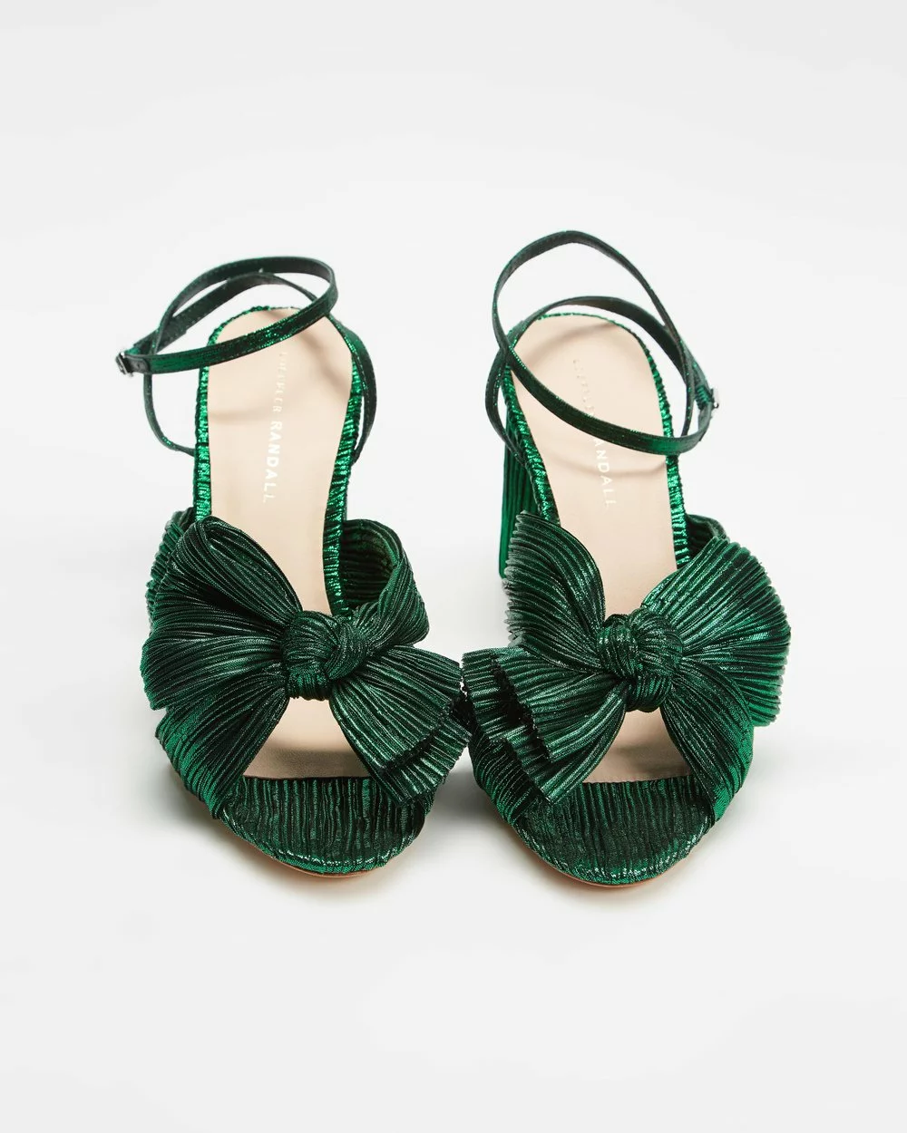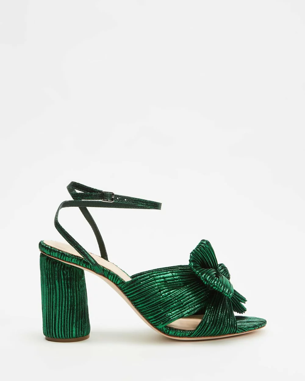 A masterful interplay between opulent glamour and ethereal elegance, the Camellia Knot Mules with Ankle Strap by Loeffler Randall channel a magnetic charisma. The pleated chiffon upper is tinted in a shimmering pink hue which will add textural depth to any holiday outfit.