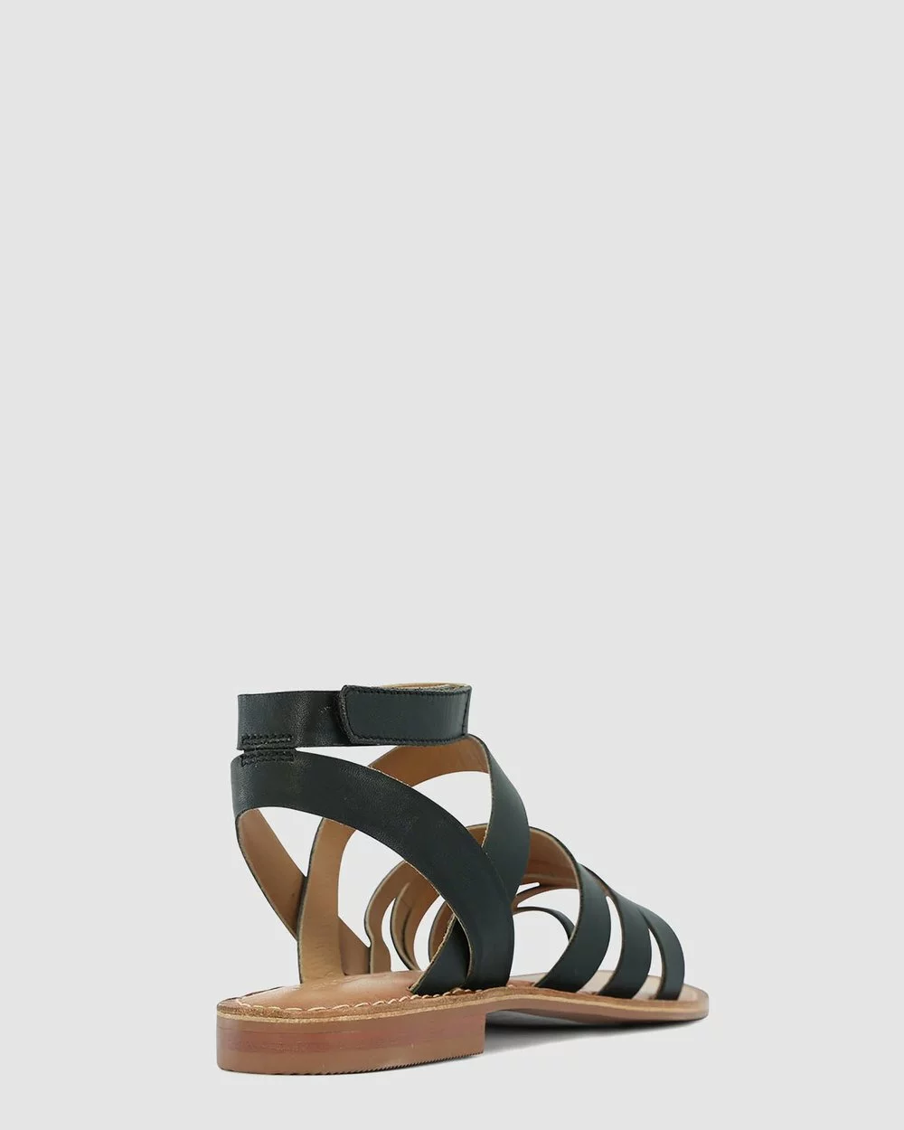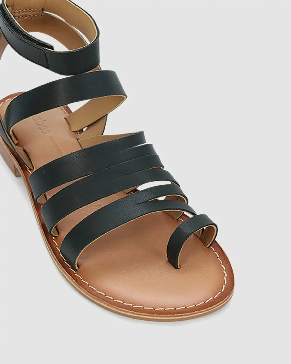 – Full leather sandal- Multi strap leather sandals – Feature toe post – Velcro fastening- Full leather board insole – Elegant asymmetric design – Traditional Black shade – Open-toe design