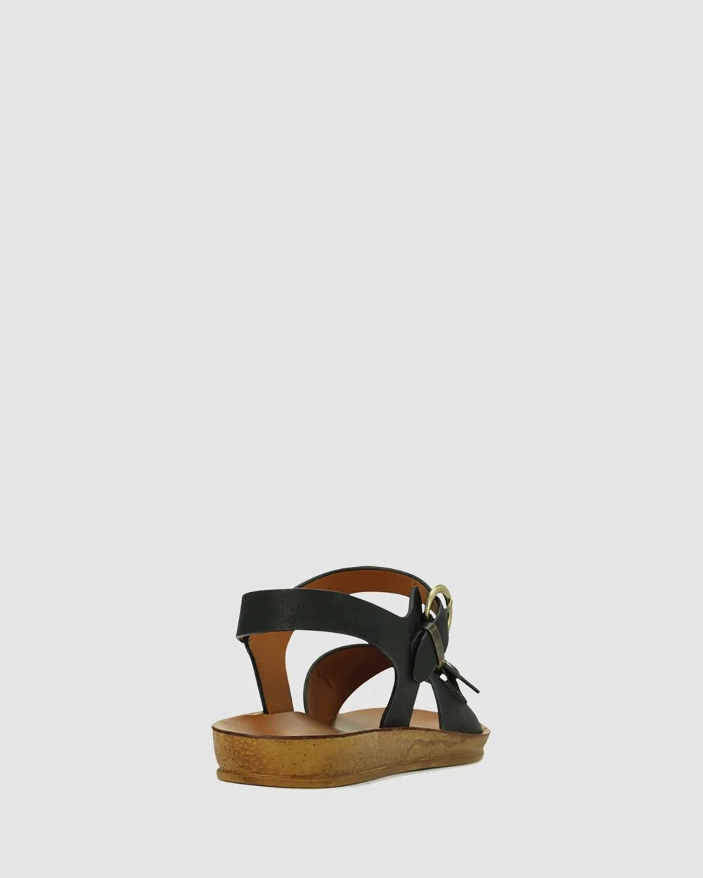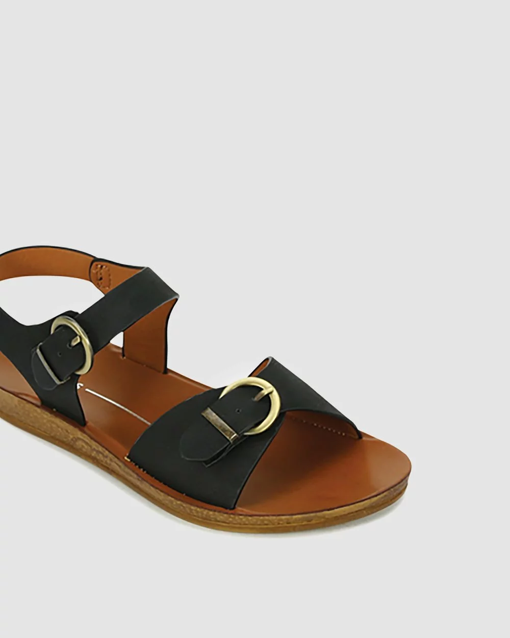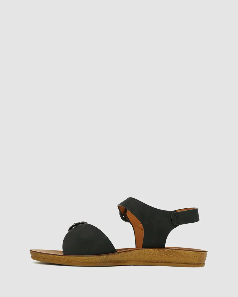 – Flexible sandal – Comfortable, adjustable ankle strap – Antique bronze buckle accent – Leather free