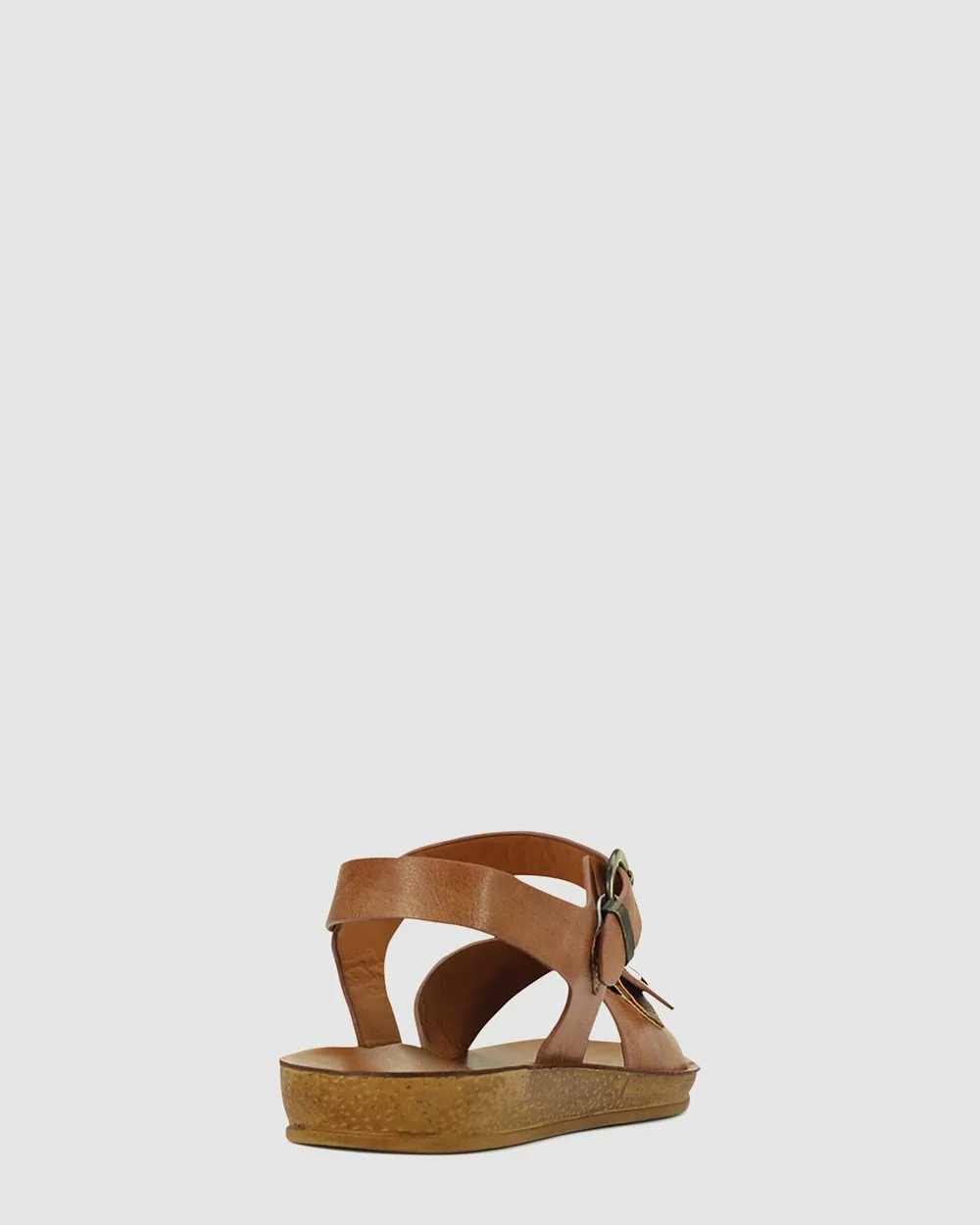 – Flexible sandal – Comfortable, adjustable ankle strap – Antique bronze buckle accent – Leather free