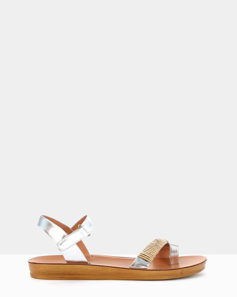 – Aerated polyurethane unit engineered for flexibility and softness – Hand-brushed materials – Resort-styling – Asymmetric toe piece – Ankle buckle fastening – Patterned material front strap