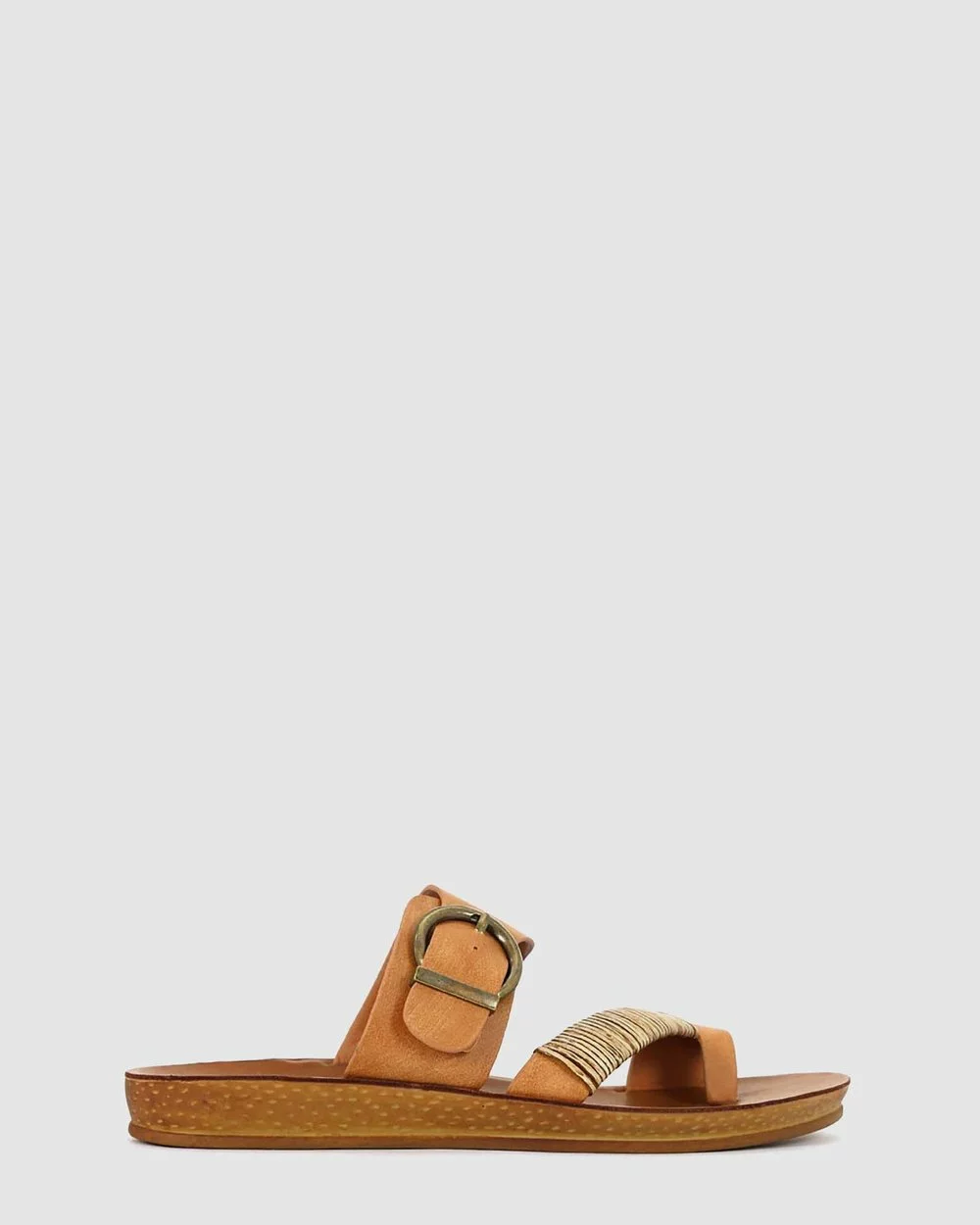 – Essential summer slide – Toe strap with natural bamboo wrap – Fashionable antique feature buckle on ankle strap – Graffiato finish on upper