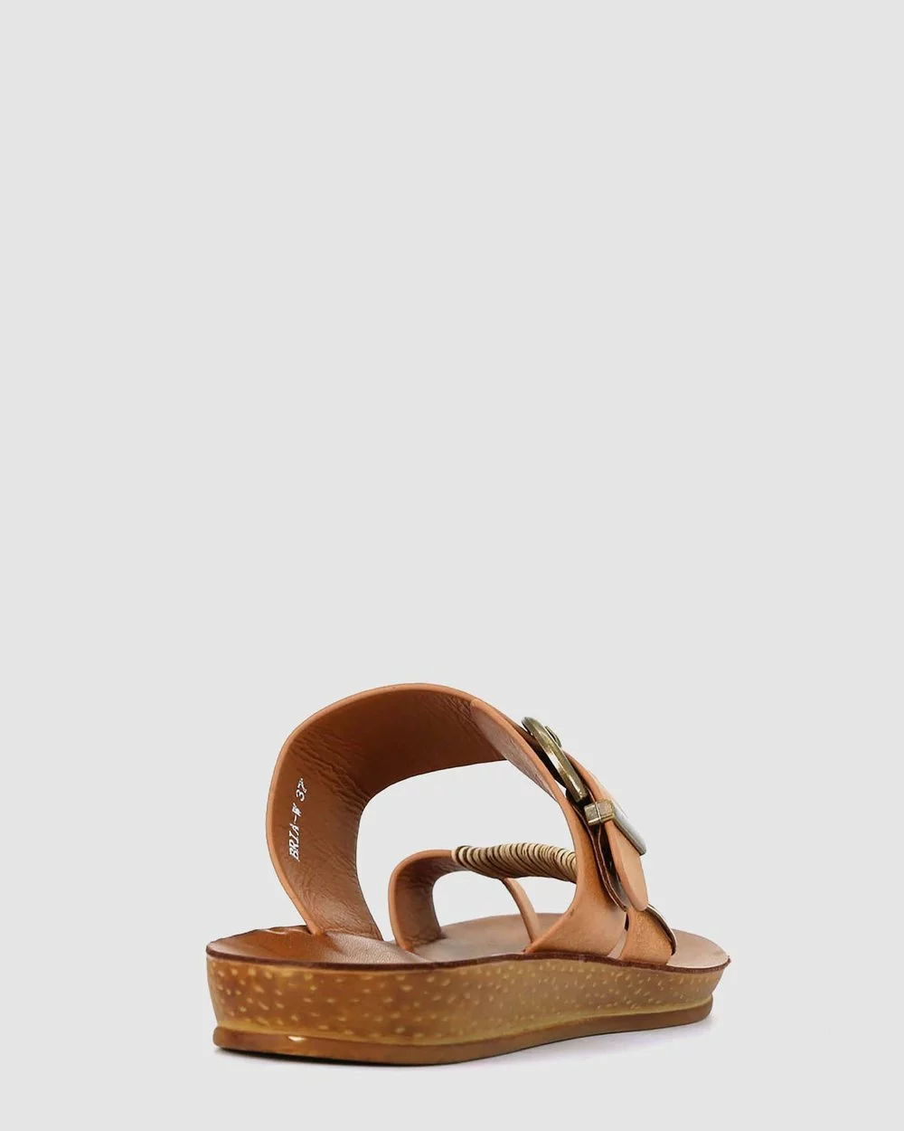 Add flair, fun and the Bria by Los Cabos to your summer collection. This easy-to-wear sandal’s clean lines are enhanced with an on-trend bamboo wrap over the toe strap and highlighted by a fashionable antique round buckle on the ankle strap. The upper features a graffiato patina for that extra eye-catching appeal.
