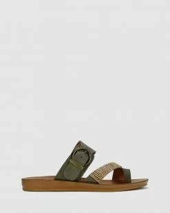 – Khaki Shades – Essential summer slide – Toe strap with natural bamboo wrap – Fashionable buckle on ankle strap – Graffiato finish on upper
