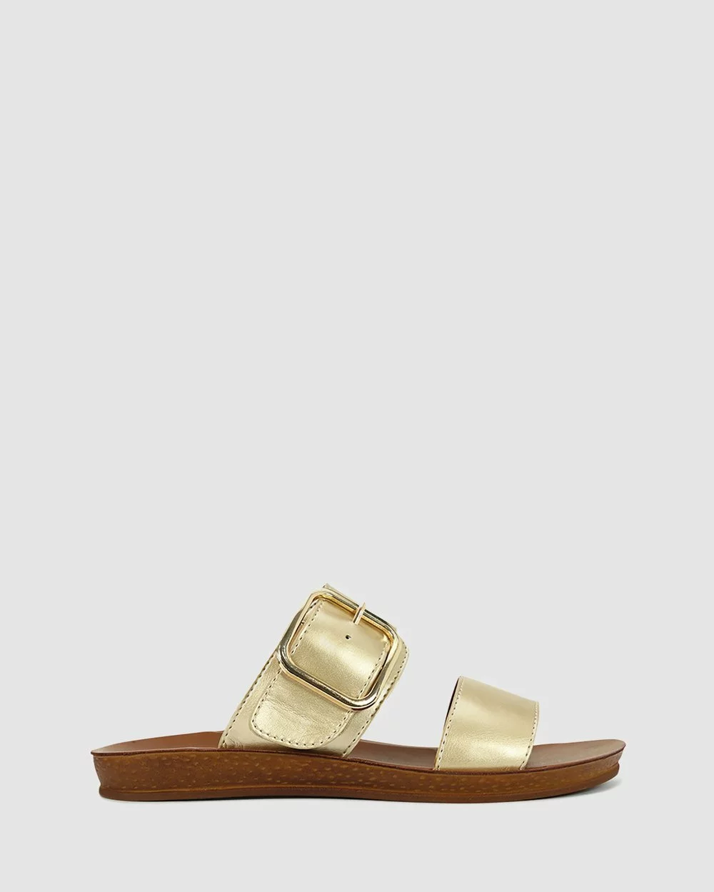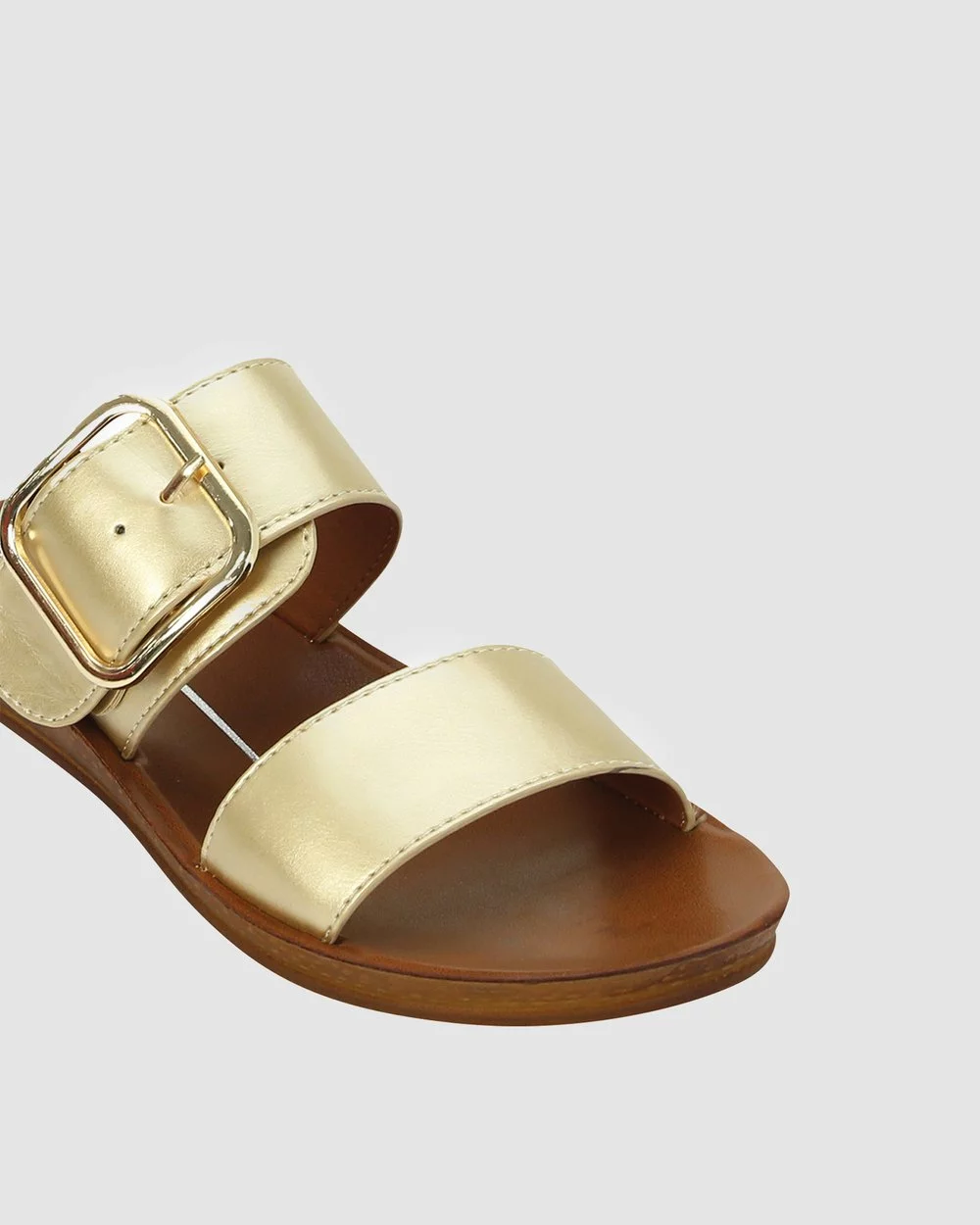 – Essential summer slide – Gold shades- Contemporary crisscross strap design – Ultra comfortable footbed