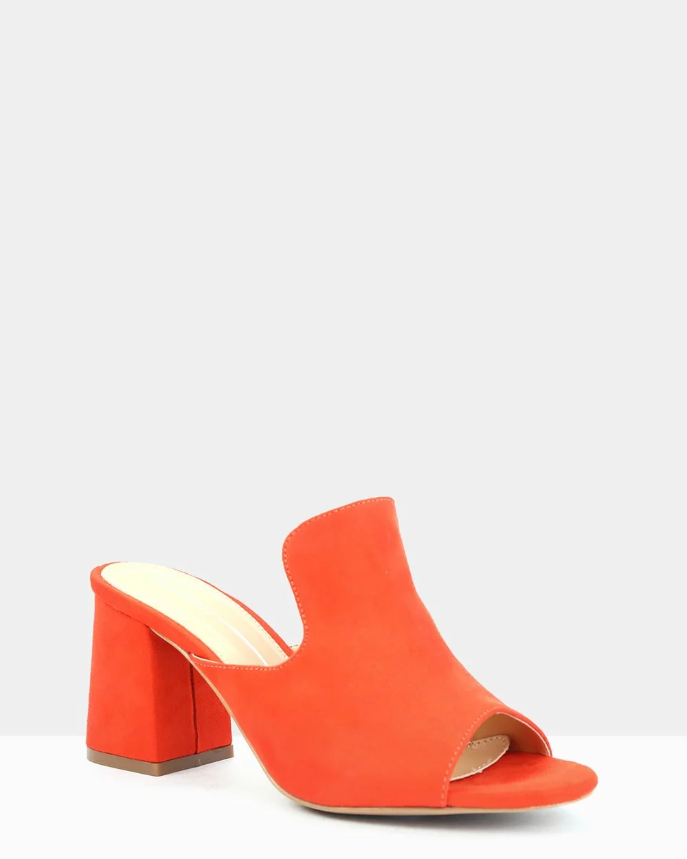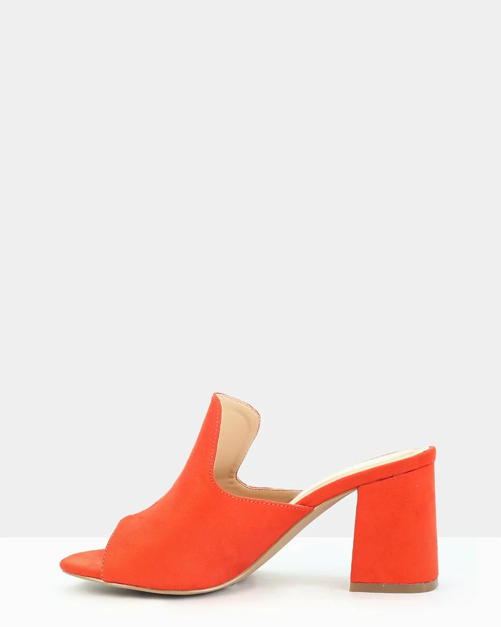 – Suede-look upper – Black hue – Open toe – Slip-on design