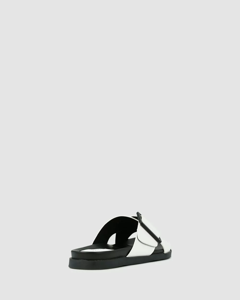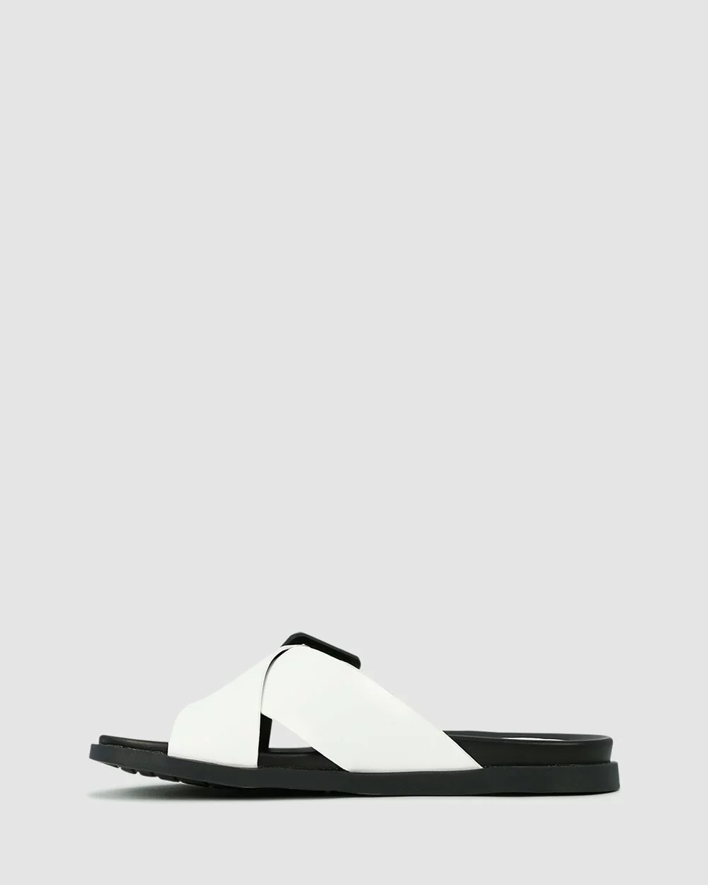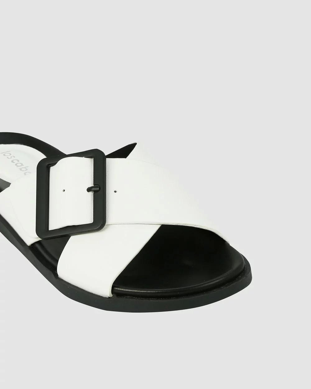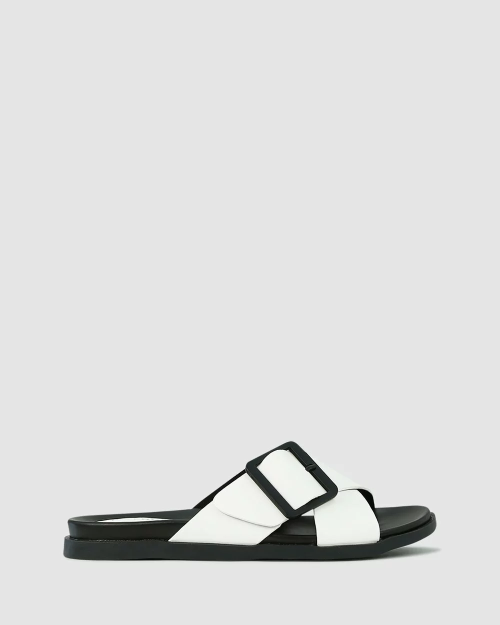 – Strappy sandals – White slide- Criss-crossed upper to secure your foot in place- Decorative Large Buckle- Padded insole for ultra comfort