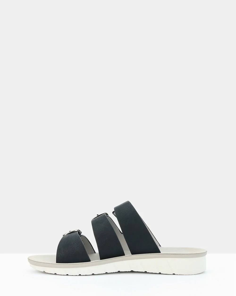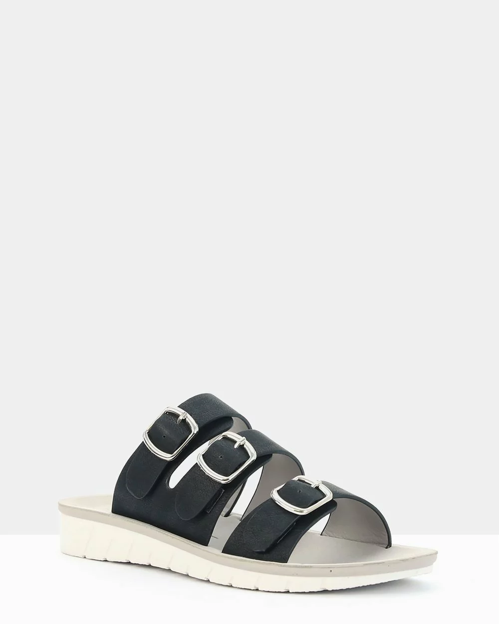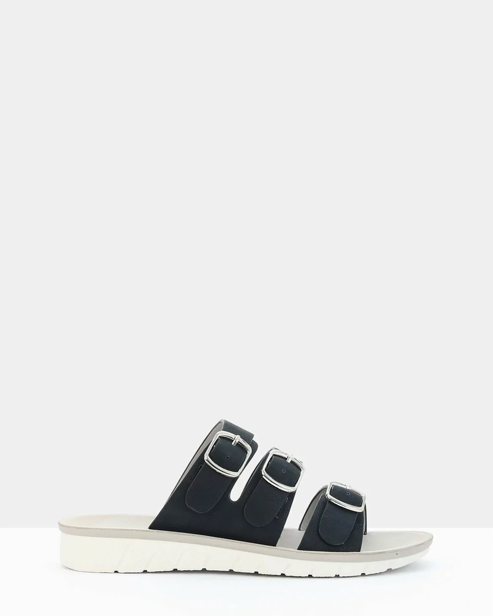 – Original flexible and aerated footbed design- Triple strap slide- Fully adjustable buckles- Beautifully hand-brushed pastel colours- Invigorated grey and white outsole- Leather free Heel Height: 20mmInner: Man madeSole: Man madeUpper: Man made