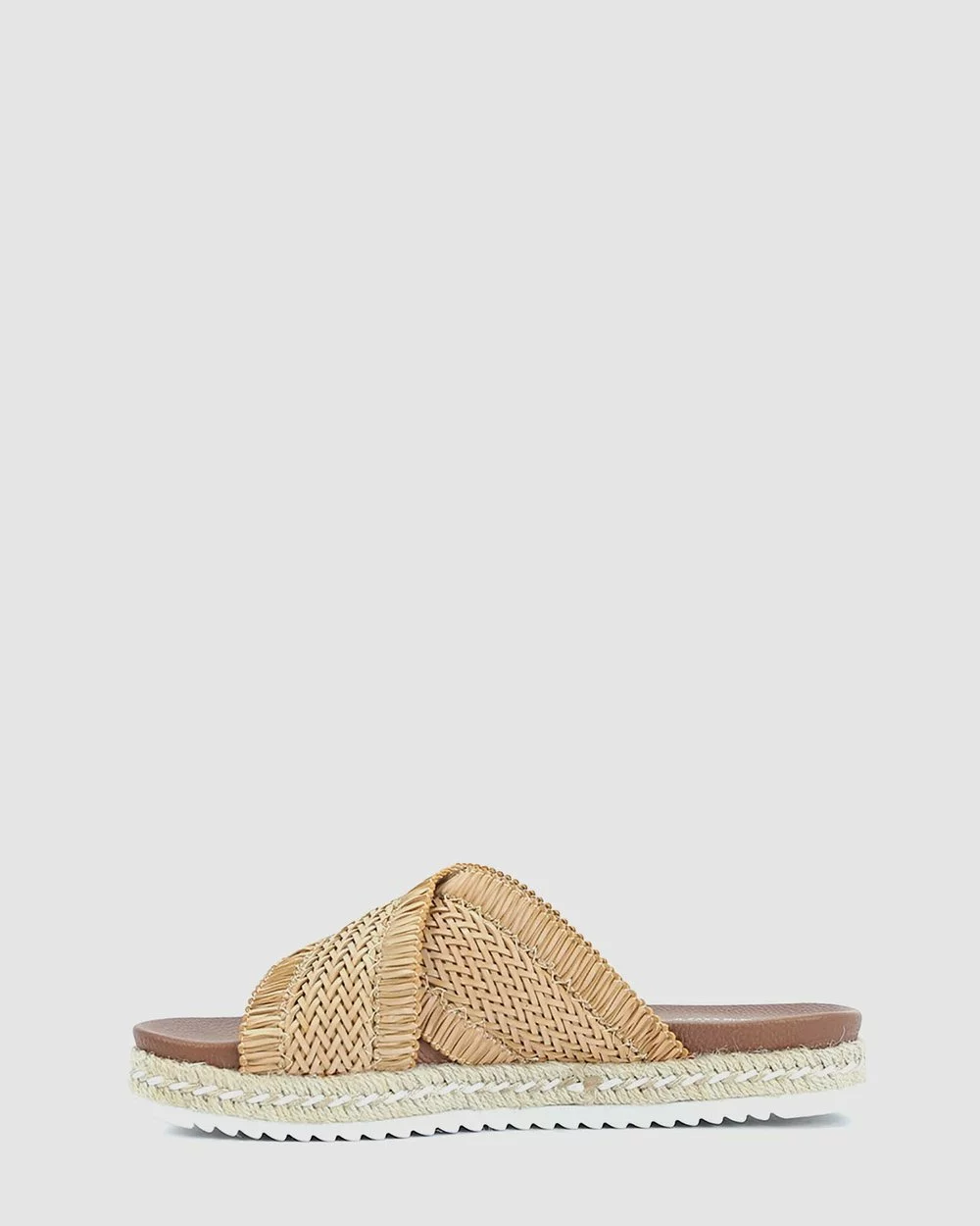 – Essential summer slide – Tan neutral shades- Contemporary crisscross strap design – Ultra comfortable footbed – Classic espadrille style outsole – Hand woven quality construction