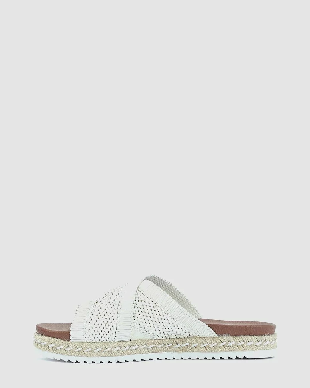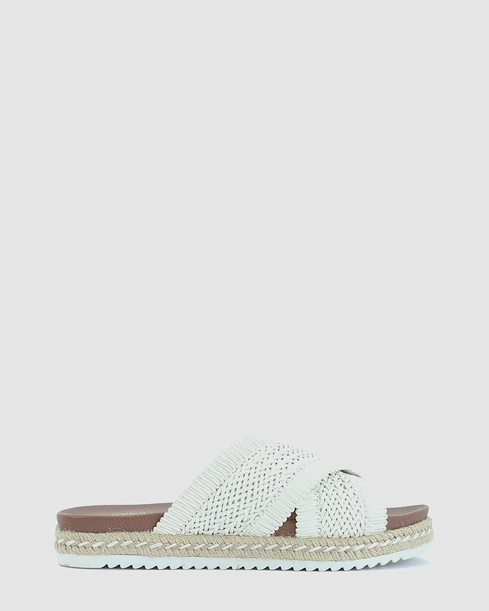 – Essential summer slide – White shades- Contemporary crisscross strap design – Ultra comfortable footbed – Classic espadrille style outsole – Hand woven quality construction