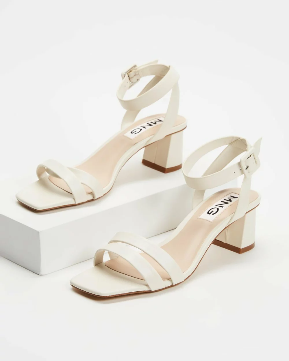 – Adjustable ankle strap; natural-toned buckle