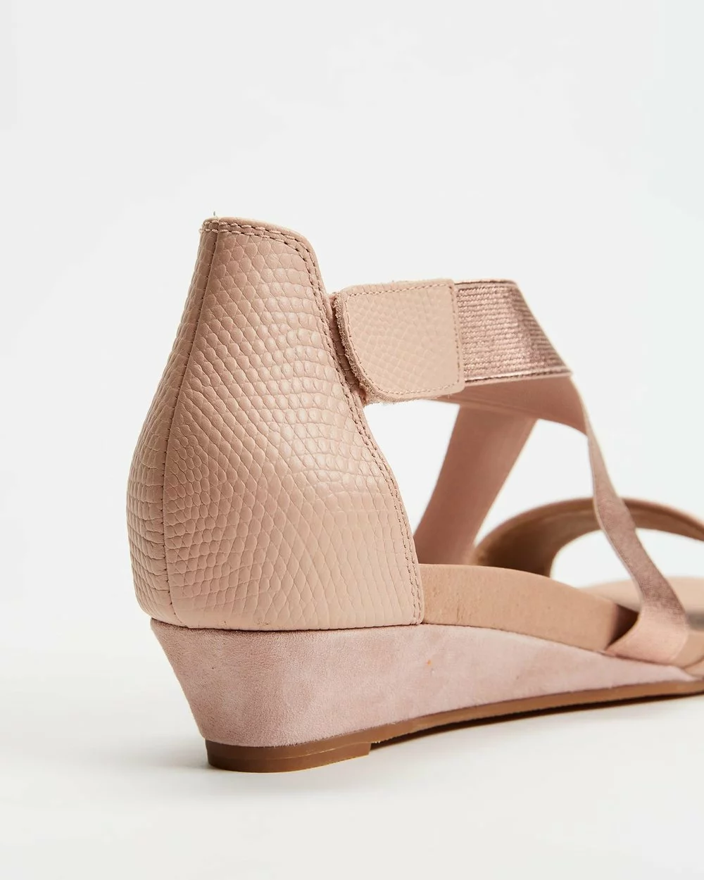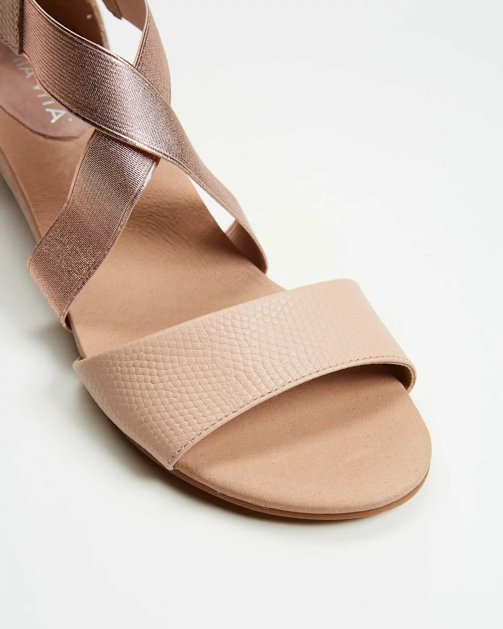– Fixed pebbled leather vamp- Elasticated cross-over straps