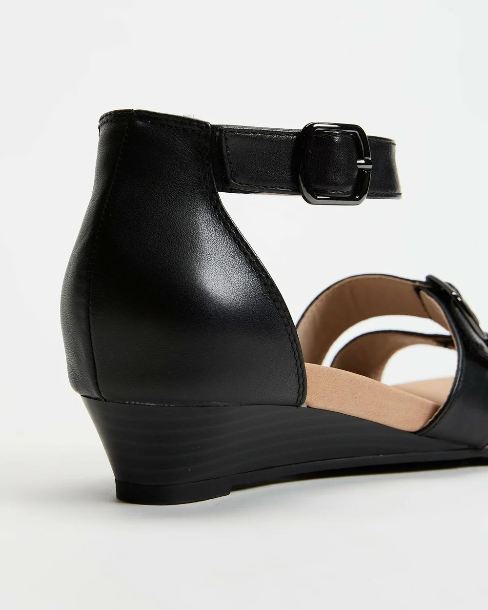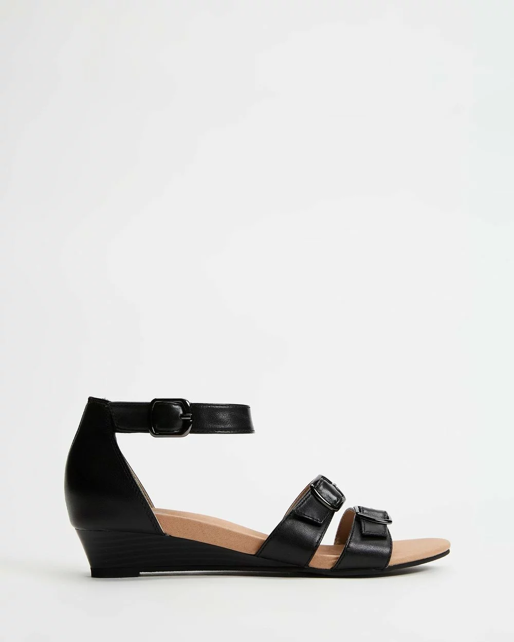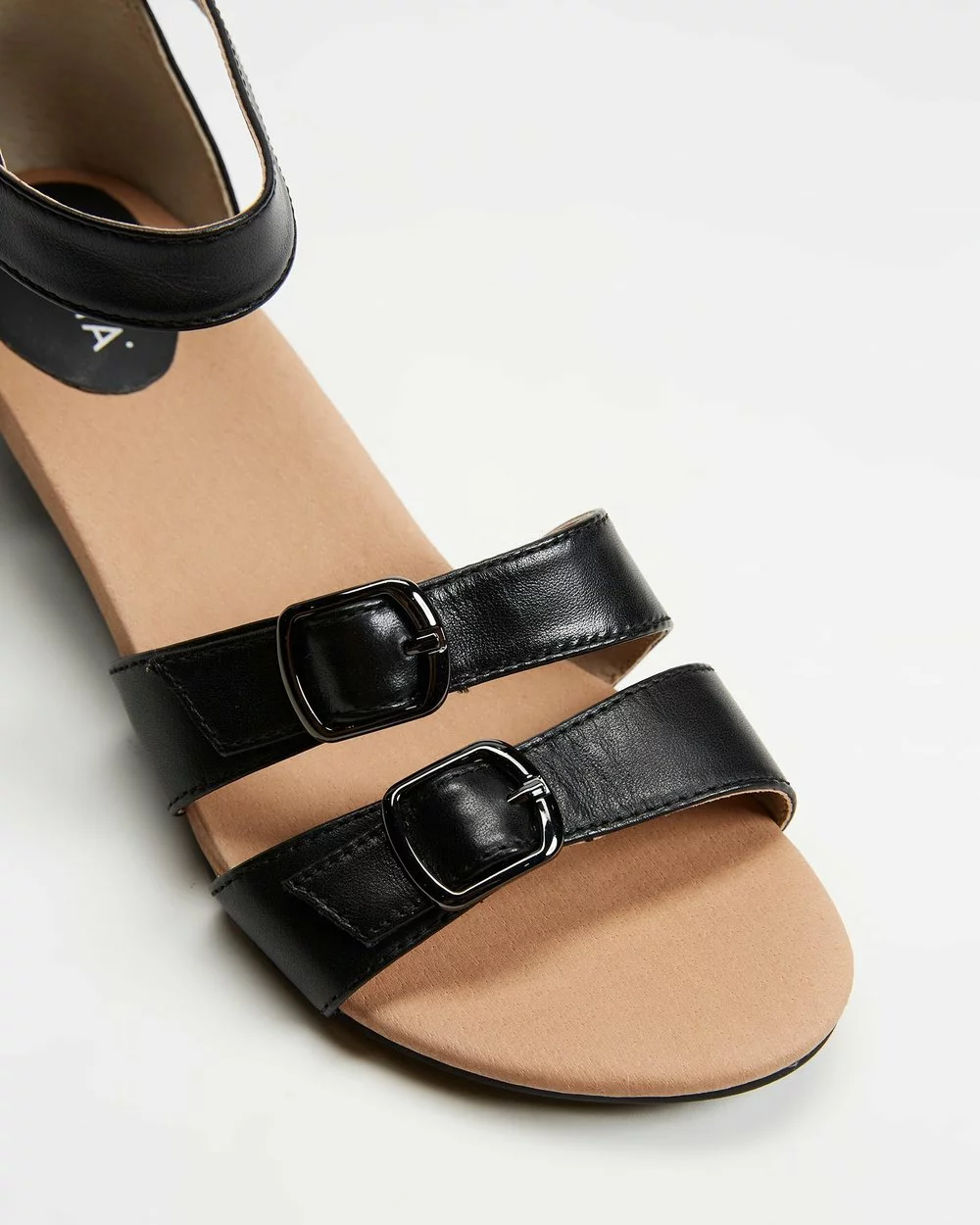 – Genuine leather upper- Buckle adjustable vamp and ankle straps- Black-toned metal hardware