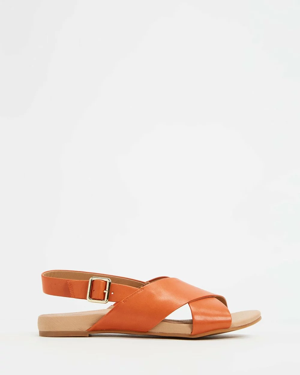 – Genuine leather upper- Crossover straps to vamp – Buckle adjustable ankle strap- Gold-toned metal hardware