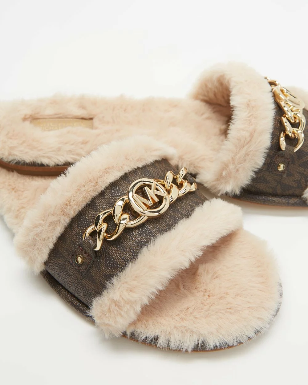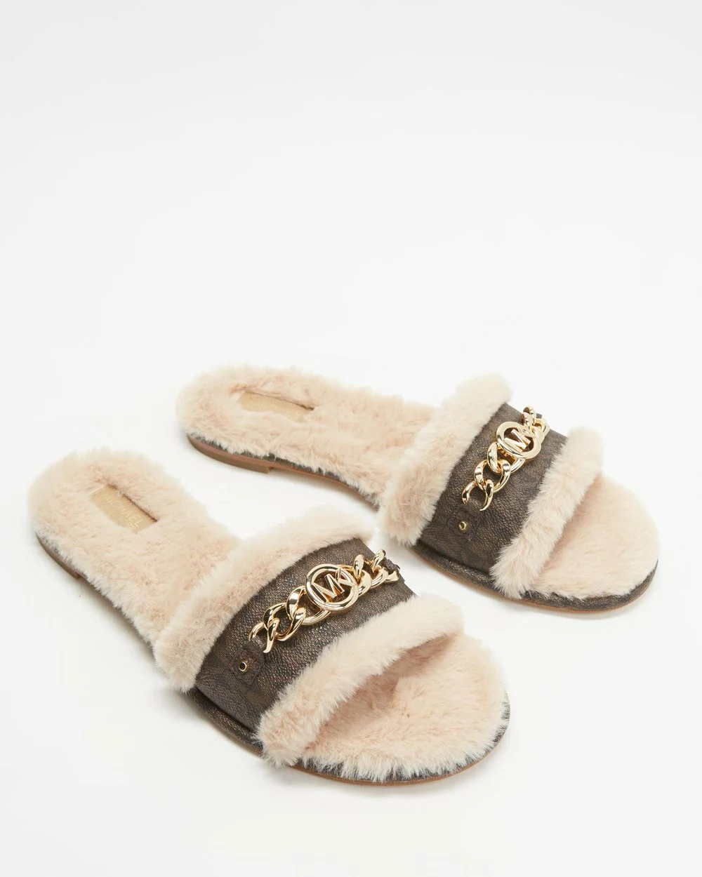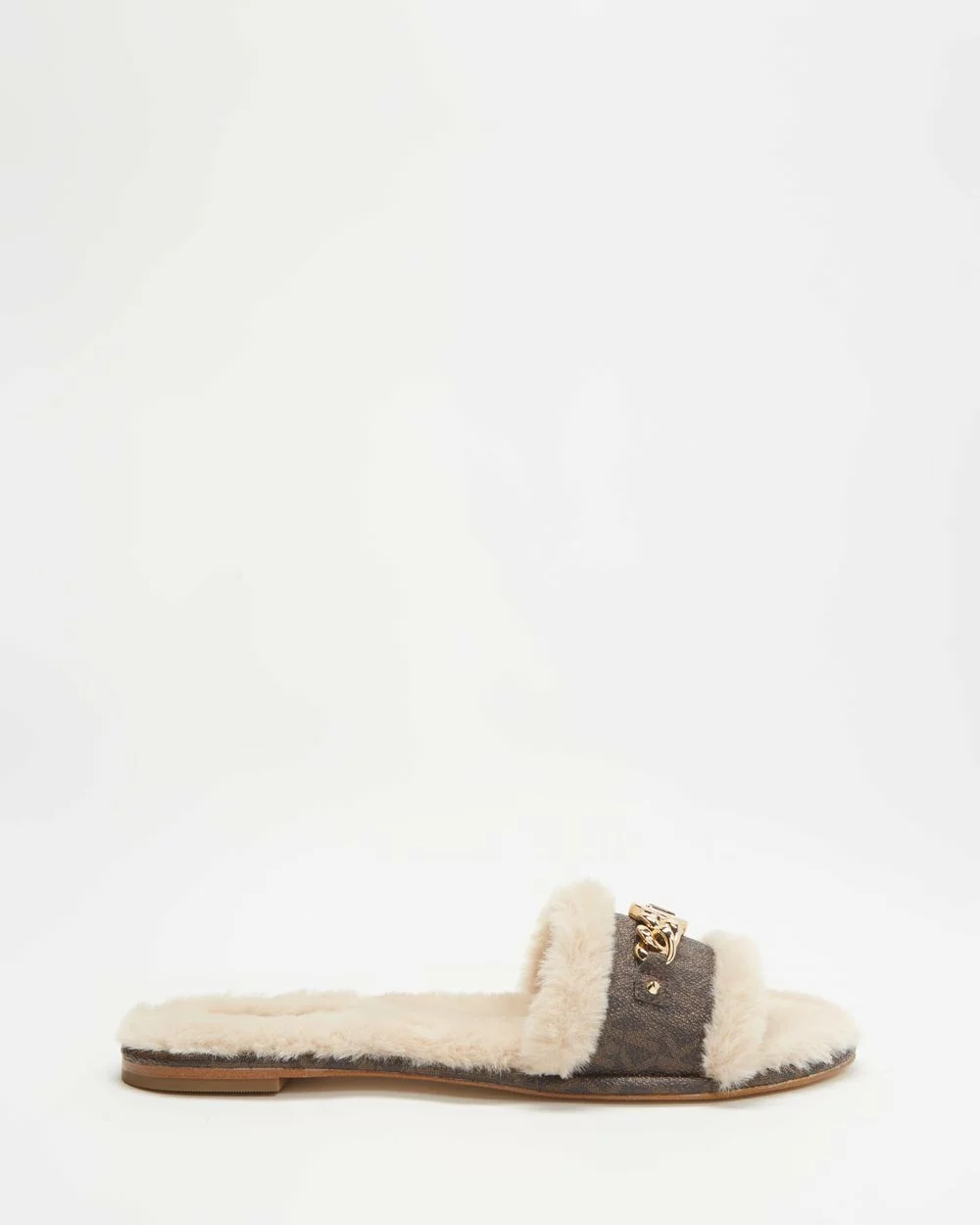 Bring a laid-back high-end feel to your look with the masterfully designed Rina Slides by Michael Kors. Created as a feature to your look, these shoes are made to solidify your high-style status with their intricate design.