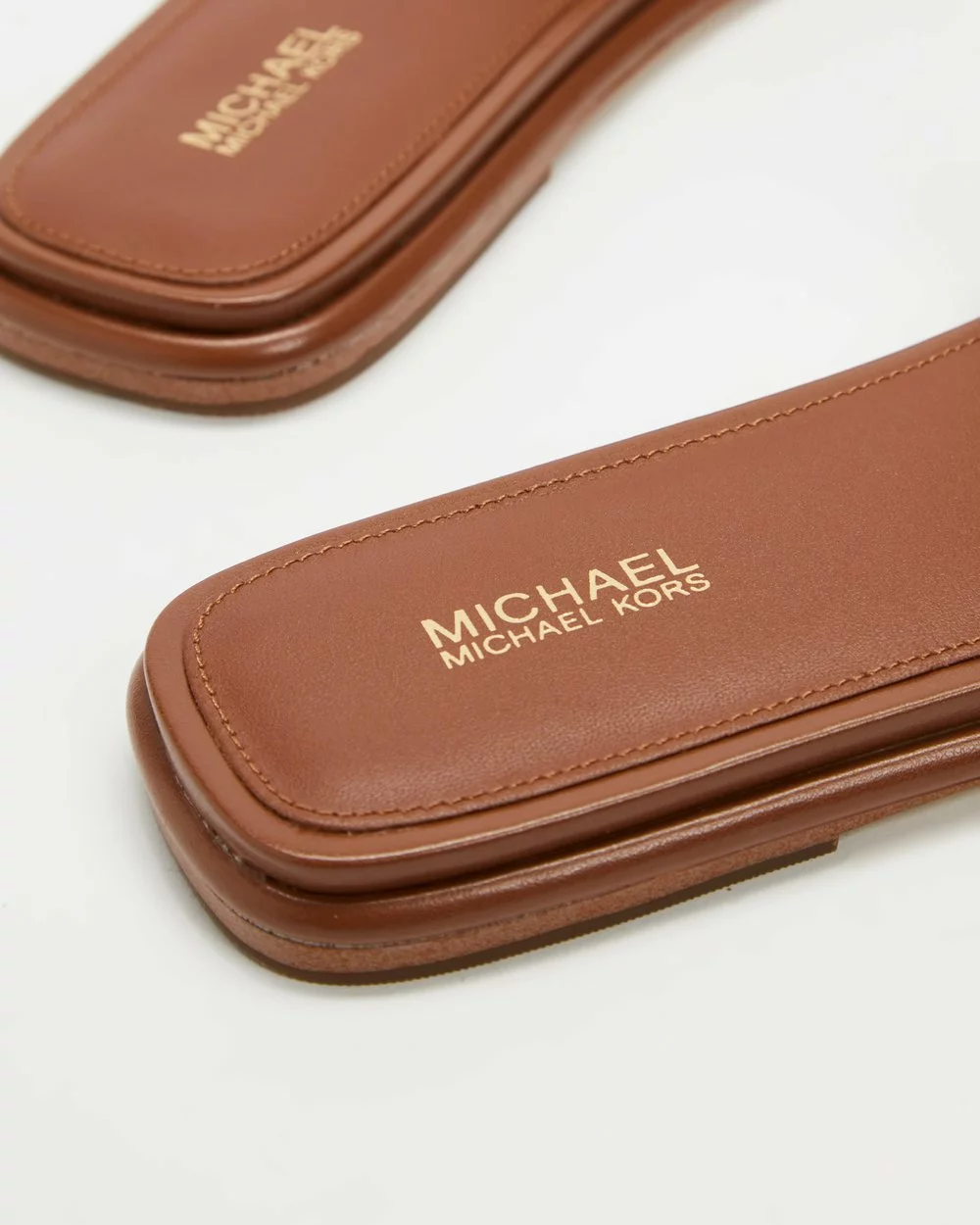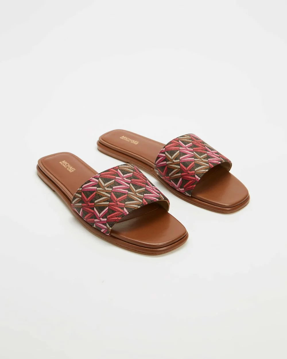 Step into style without forgoing comfort in the Sadler Slides by reigning monogram monarch Michael Kors, reinforced in leather with a flat slip-on sole.