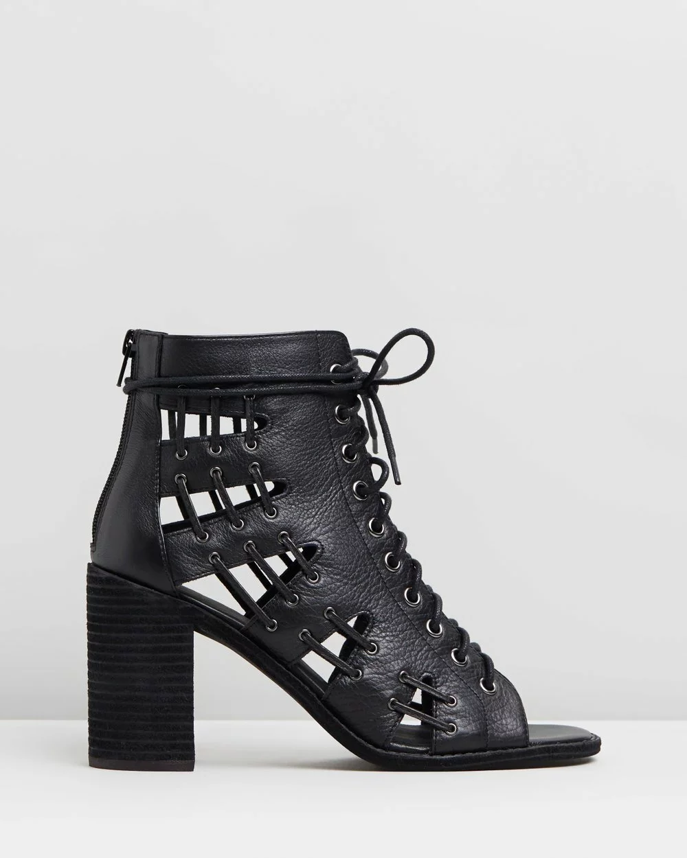 The Mollini Jayman heels are in the style spotlight this season. The strappy design will add edge to your casual dresses, and put a model-off-duty spin on boyfriend jeans and tees.