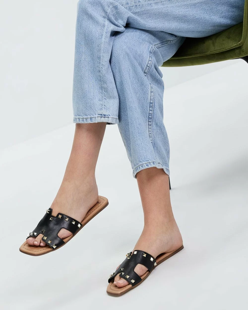 – Squared open toe design
