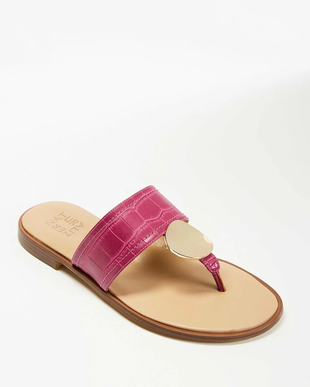 A chic warm-weather option, the Frankie sandals from Naturalizer packs a bold punch with its crocodile-textured upper and polished gold-toned disc.