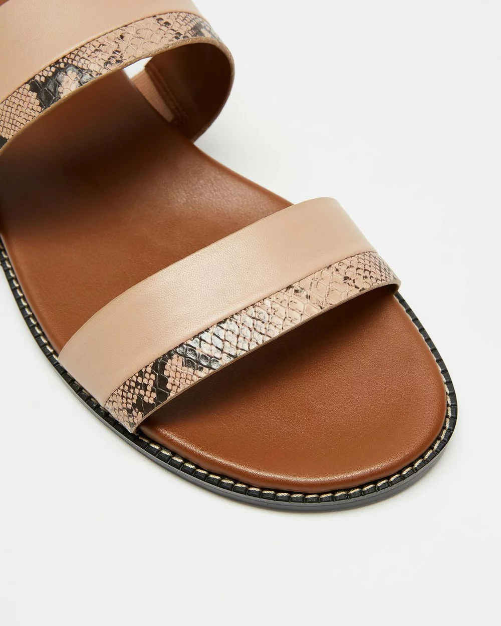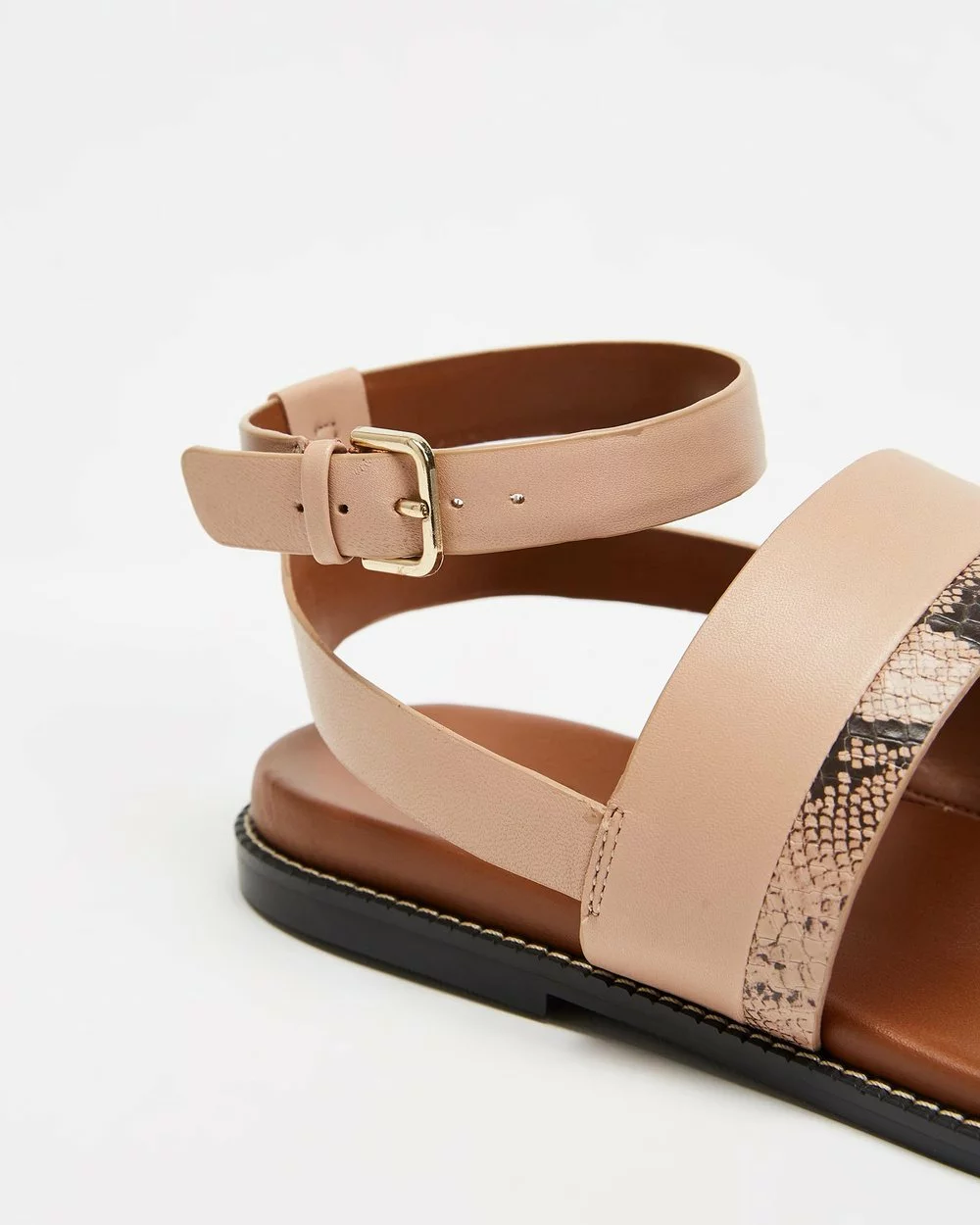 The Kelsie sandals from Naturalizer are crafted from spliced snakeskin-embossed and smooth leather with a wrap-around buckle fastening to the ankle.