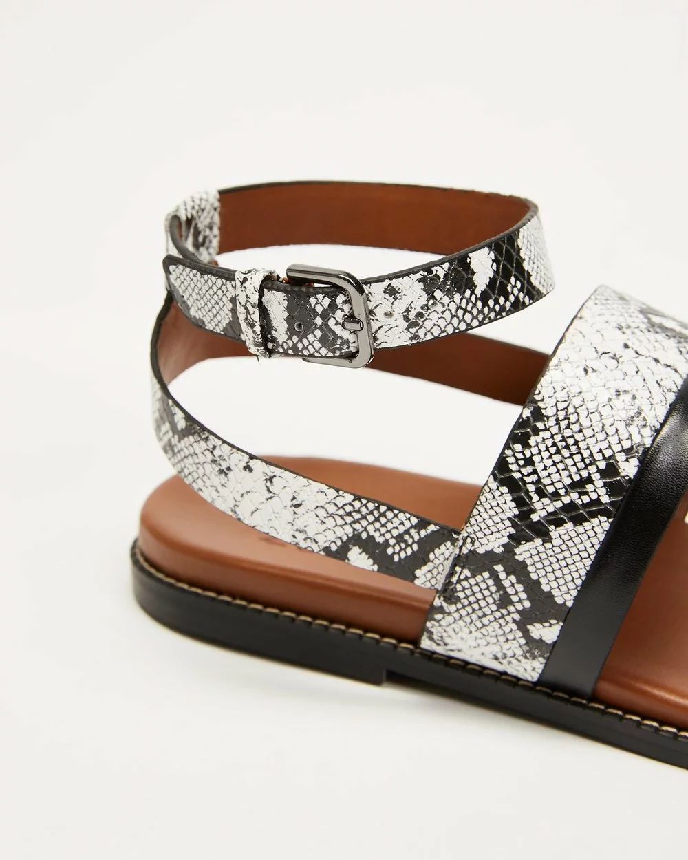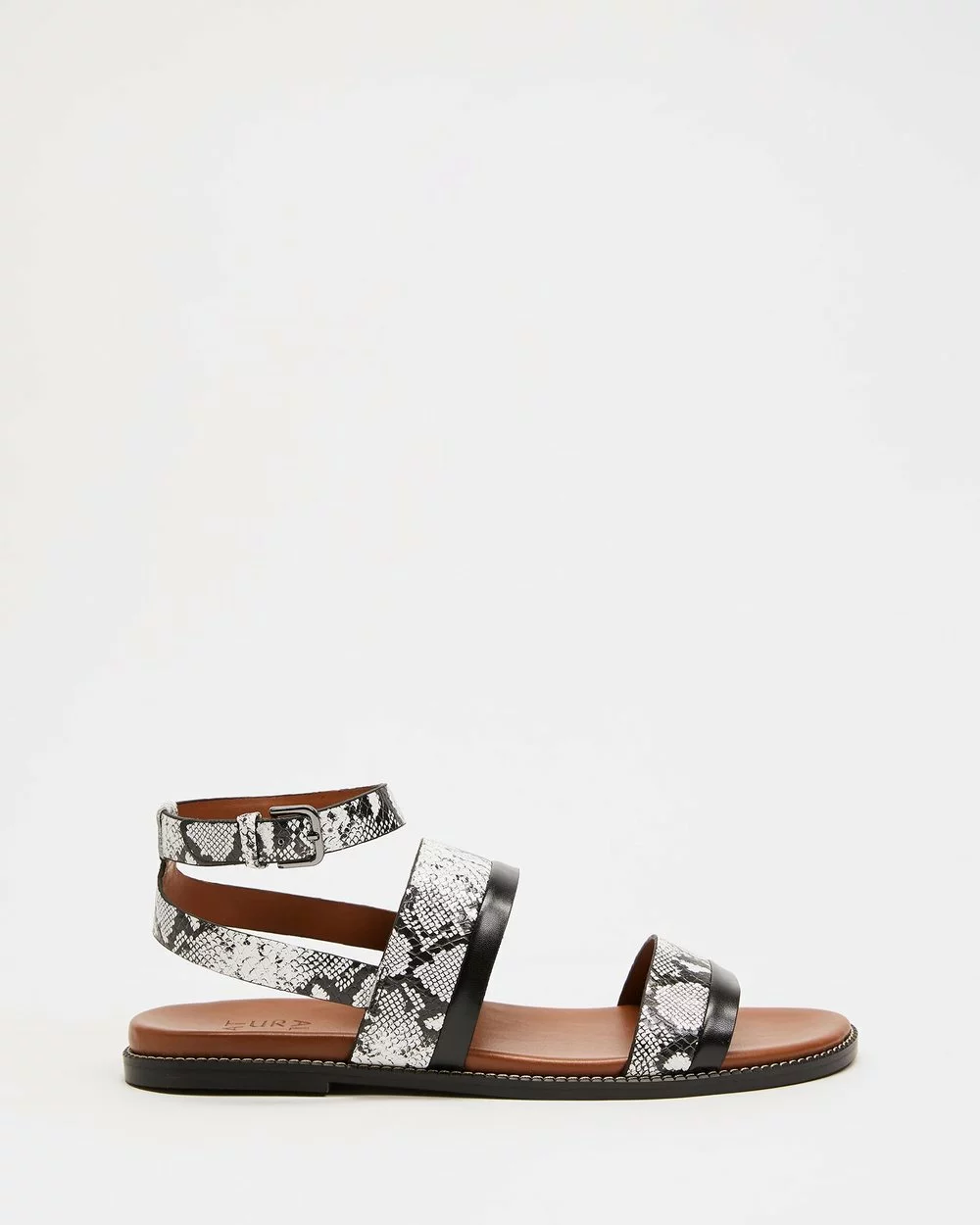 The Kelsie sandals from Naturalizer are crafted from spliced snakeskin-embossed and smooth leather with a wrap-around buckle fastening to the ankle.