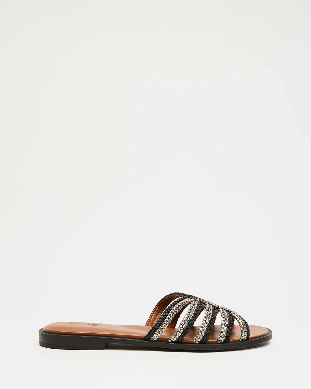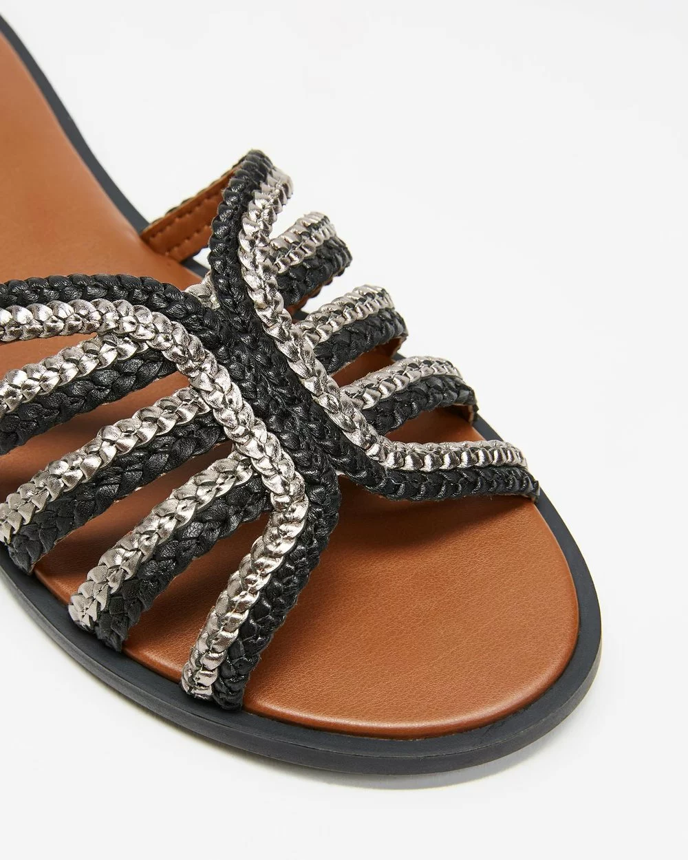 The Lane sandals from Naturalizer are your new balmy weather slip-ons, with its braided black and metallic silver upper and comfortable padded footbed.