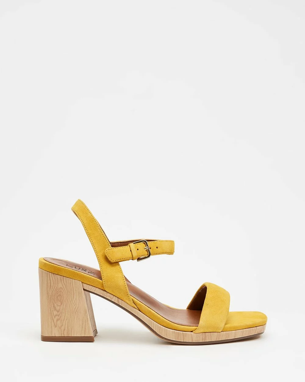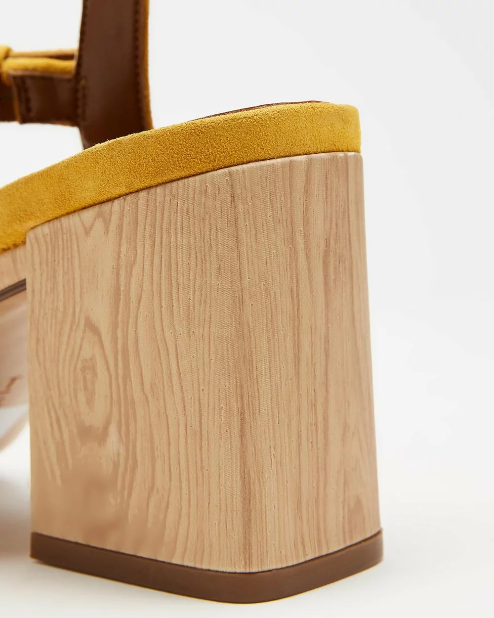 The Rose heels from Naturalizer are crafted from plush suede atop a contrasting wood-look block heel.