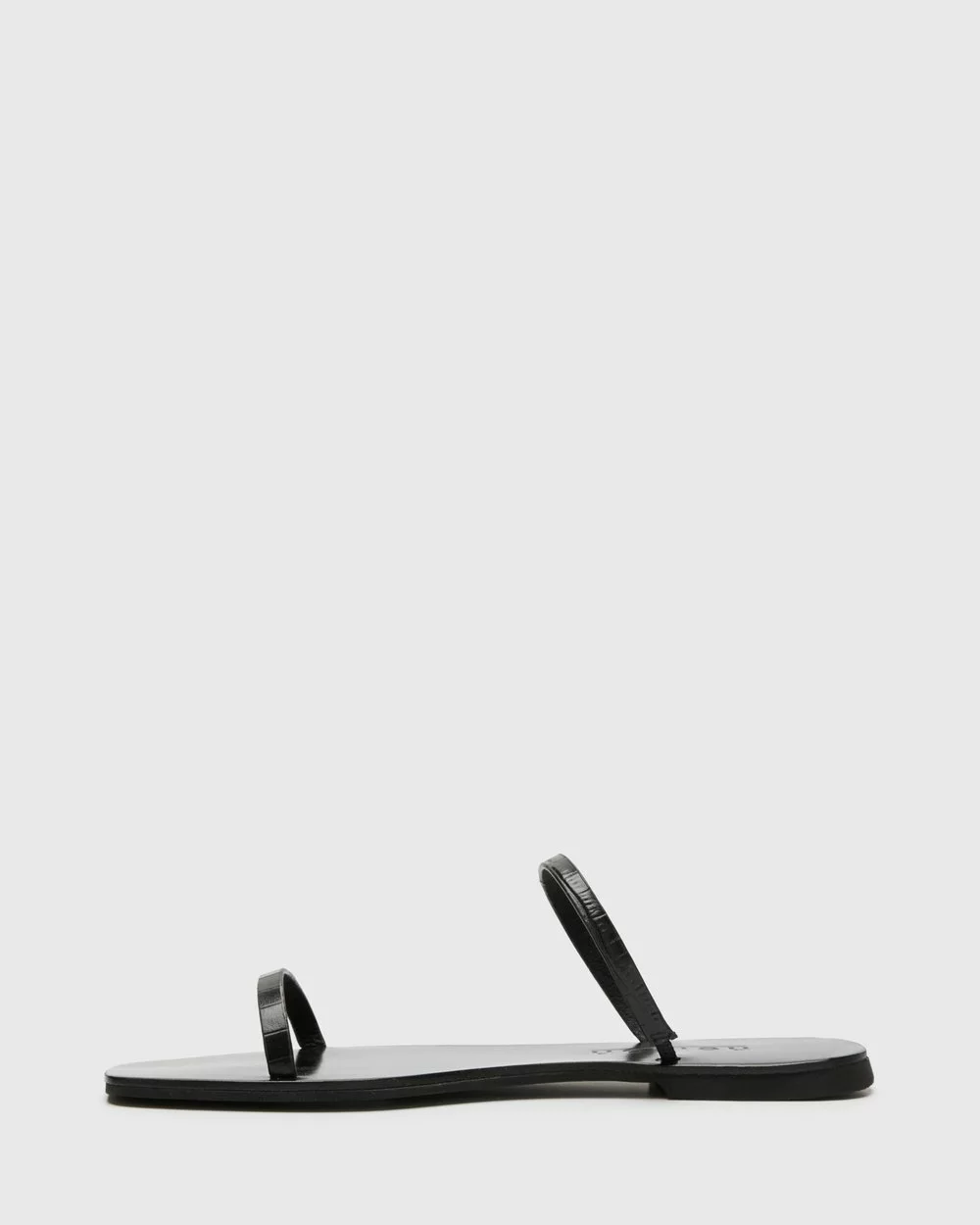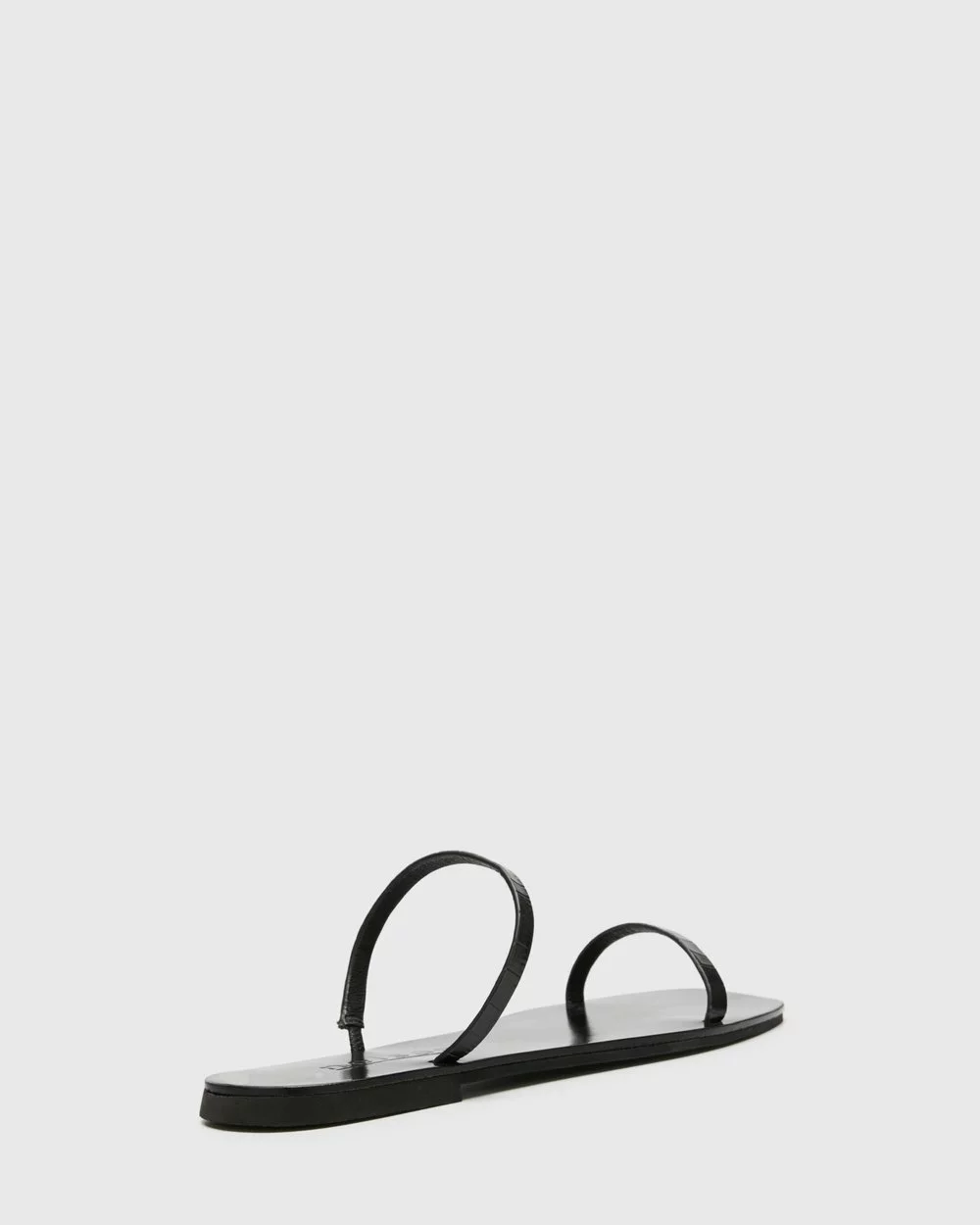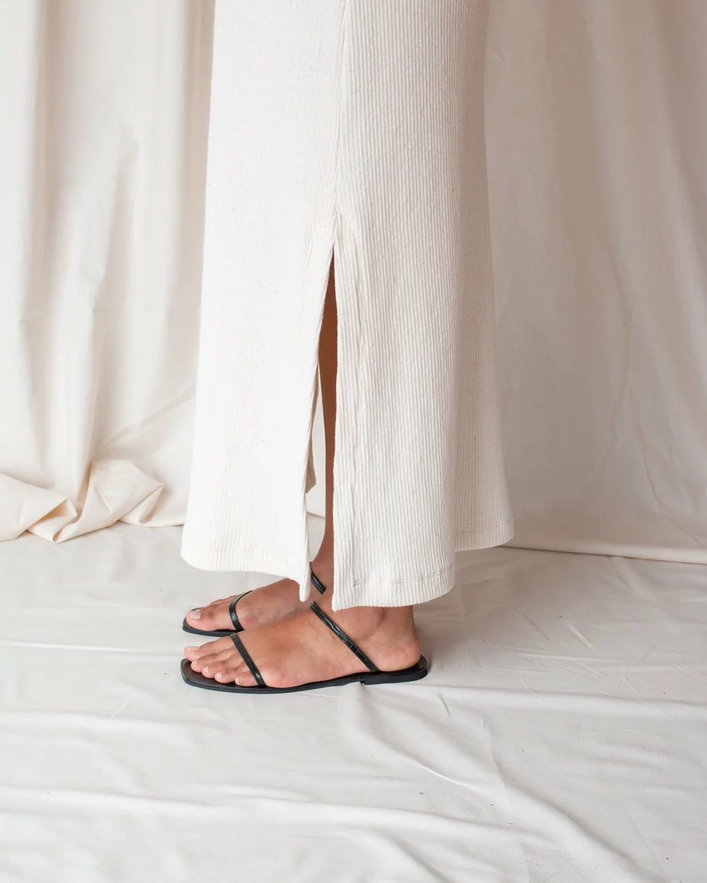 Cult footwear label Nelson Made value sustainable shoe-making in a slow-fashion, small-batch industry. The Audrey sandals are cut from black croc embossed leather and crafted in Melbourne, Australia. Audrey features delicate thin straps and a small square heel.