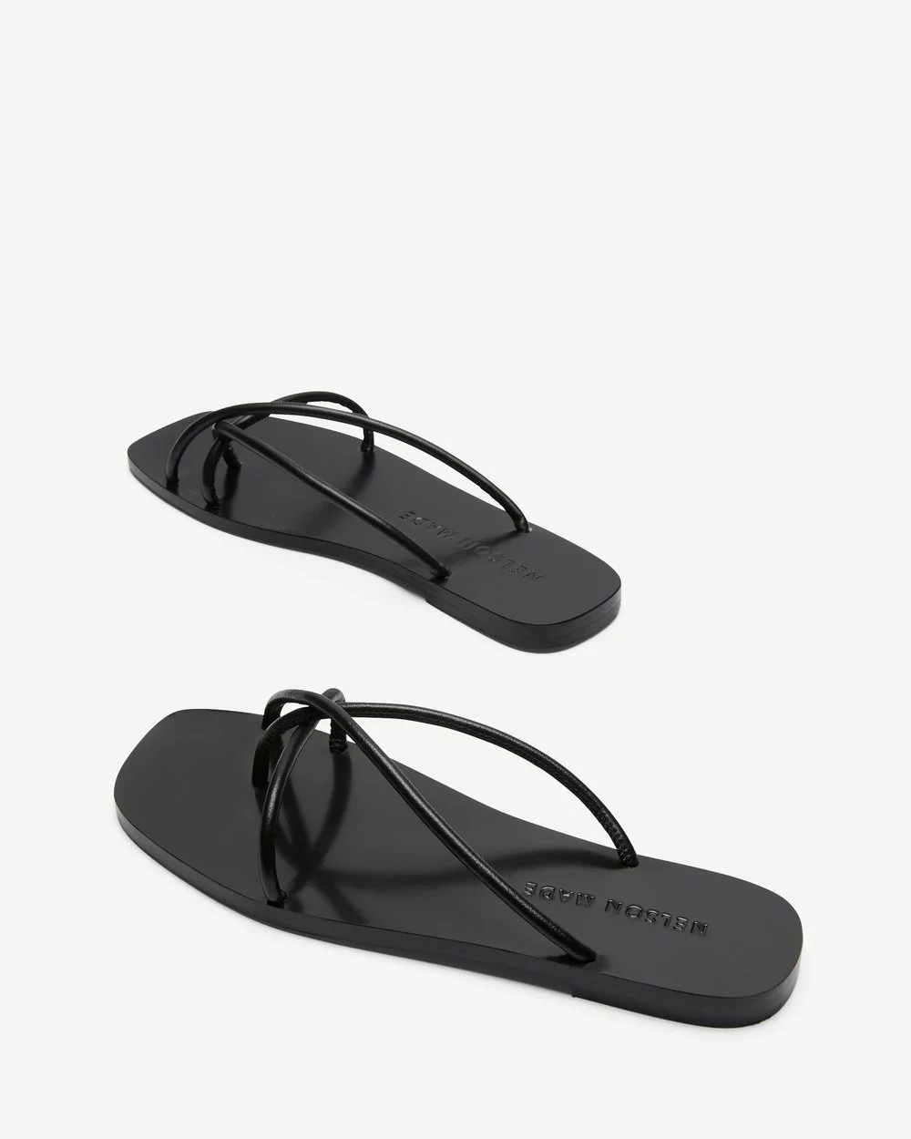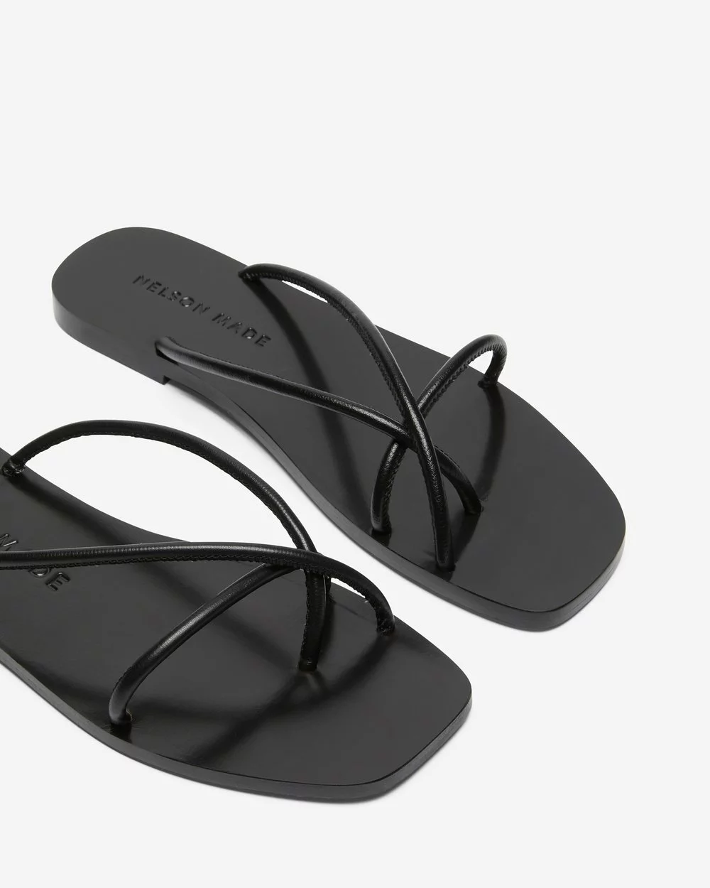 Cult footwear label Nelson Made value sustainable shoe-making in a slow-fashion, small-batch industry. The Roma Slides are the essence of balance, cut from black calf leather and feature a chic square toe.