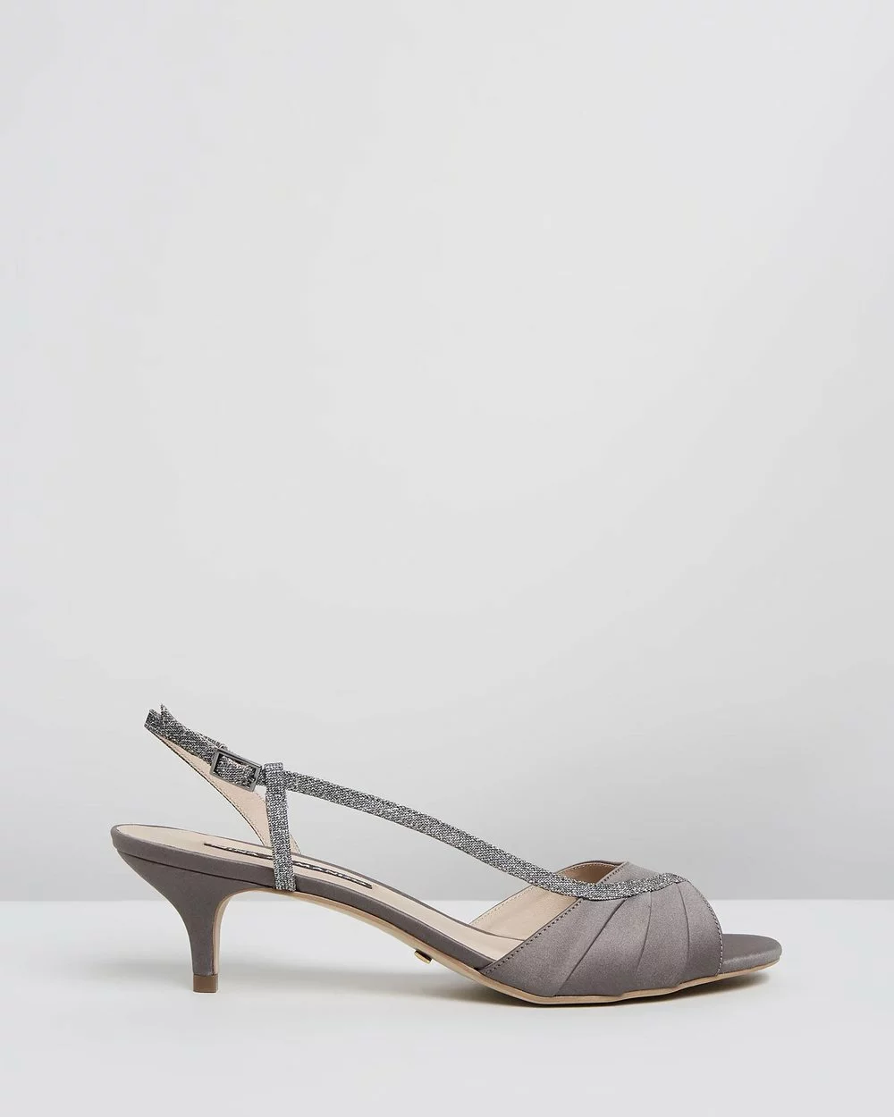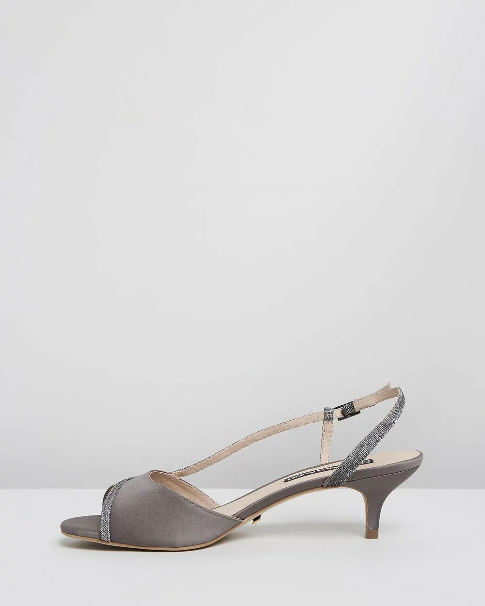 – Graphite grey with glittery silver straps; silver-toned buckle