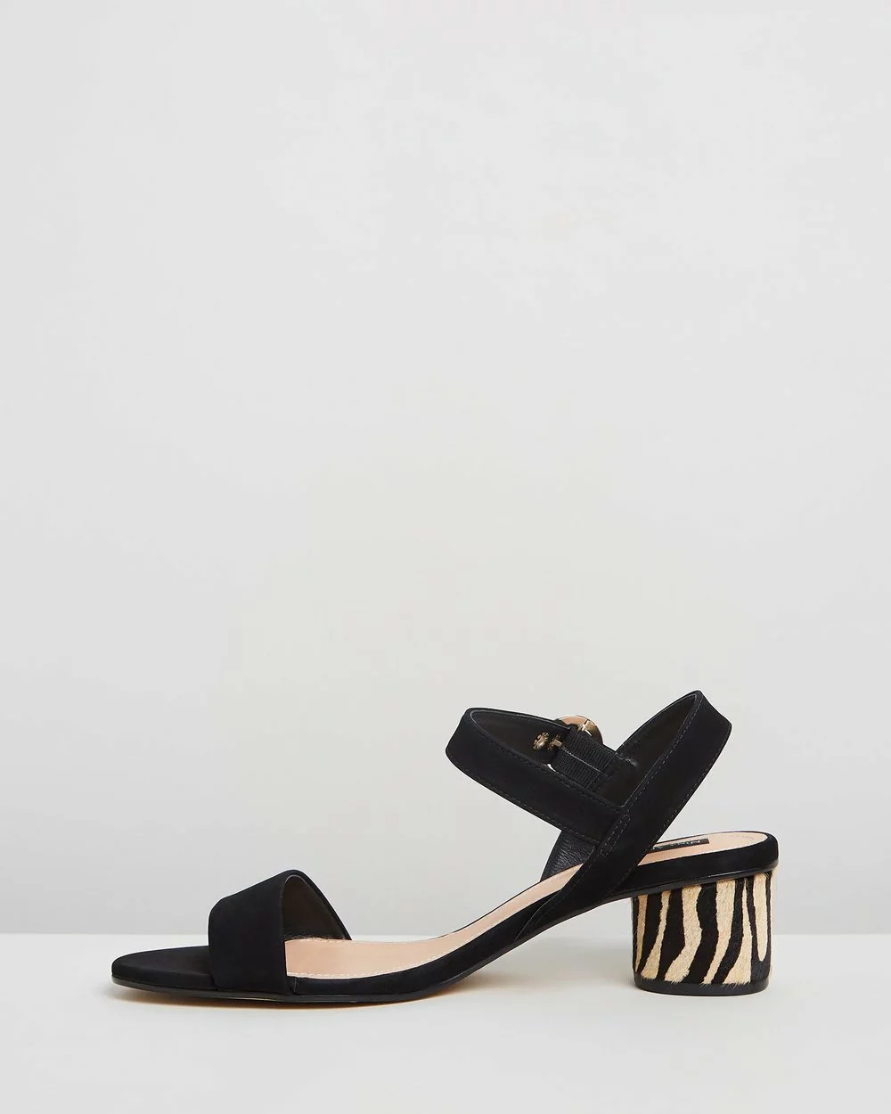 – 4.5cm pony hair-textured block heel; zebra stripe