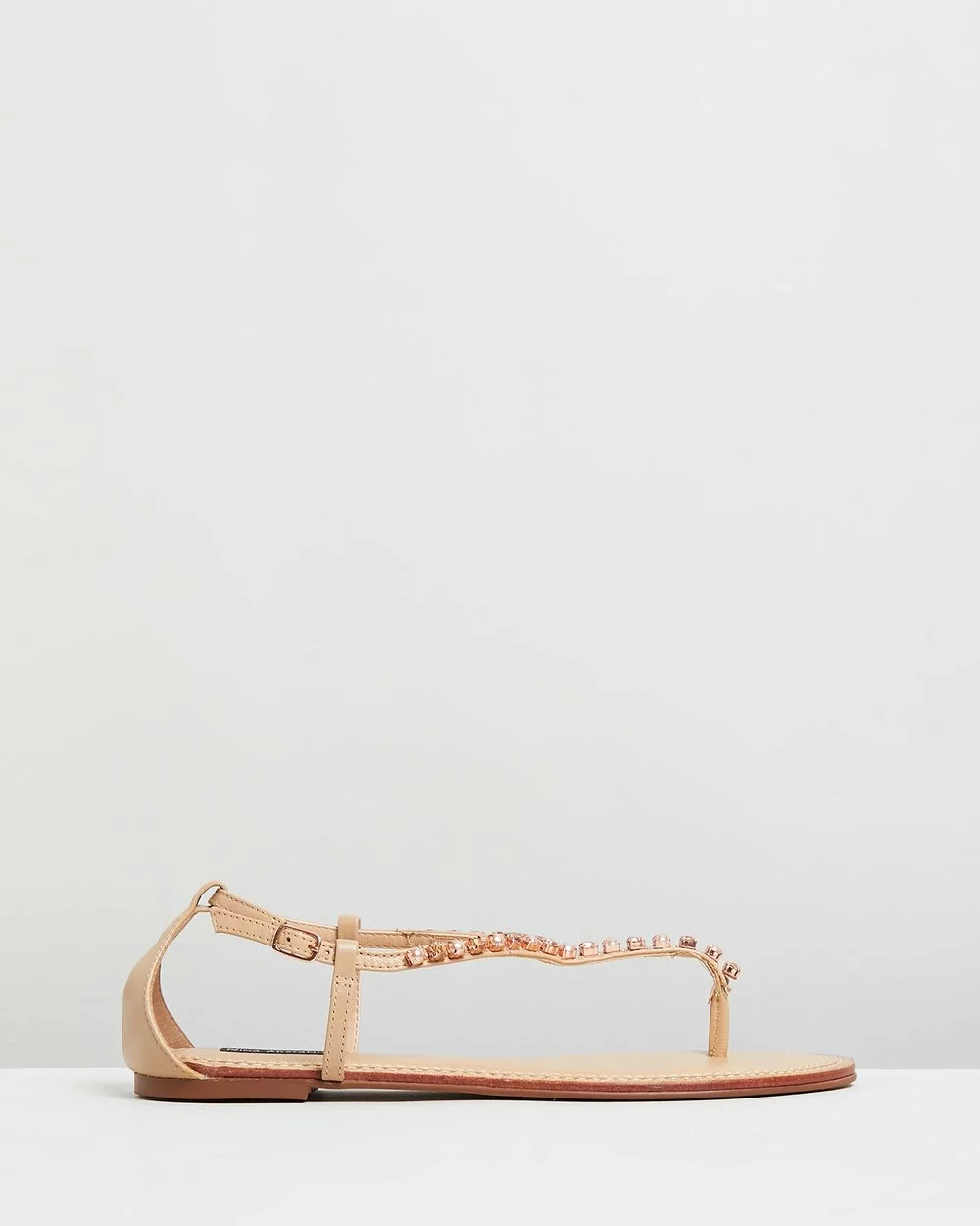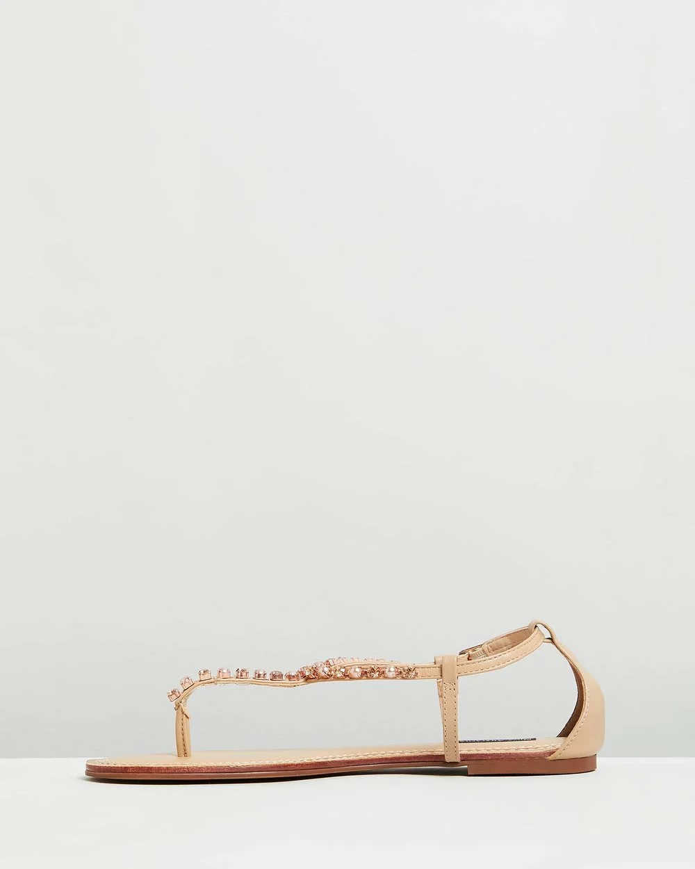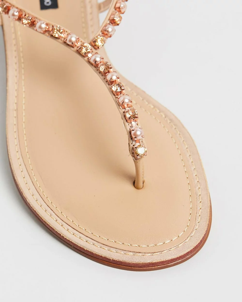 – Y-bar vamp strap; jewelled embellishments with rose gold-toned setting