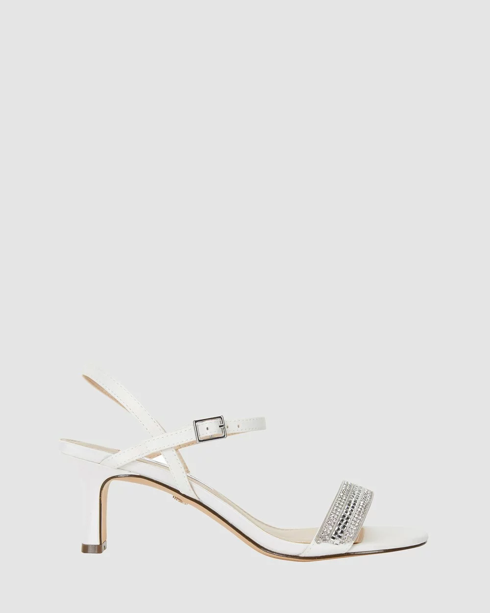 – Approx. 6cm heel height – Synthetic Upper, Synthetic Lining & Synthetic grip sole – Standard fit (B-fit)- Jeweled encrusted vamp- Slim block heel- Adjustable ankle strap for custom fit
