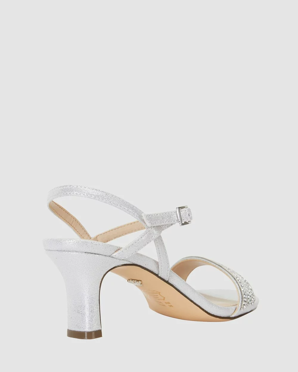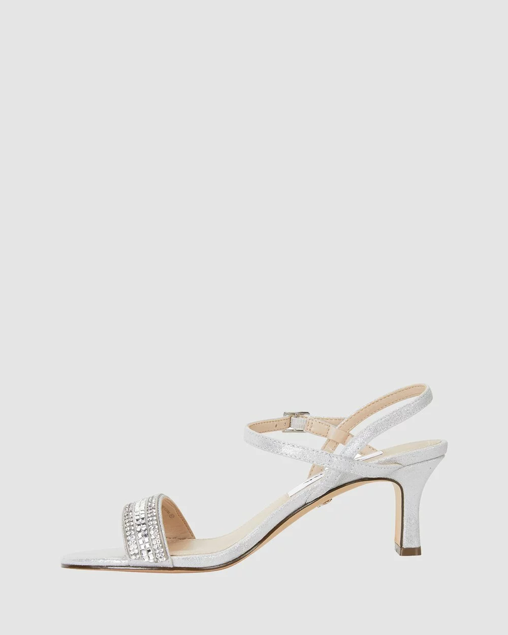 – Approx. 6cm heel height – Synthetic Upper, Synthetic Lining & Synthetic grip sole – Standard fit (B-fit)- Jeweled encrusted vamp- Slim block heel- Adjustable ankle strap for custom fit