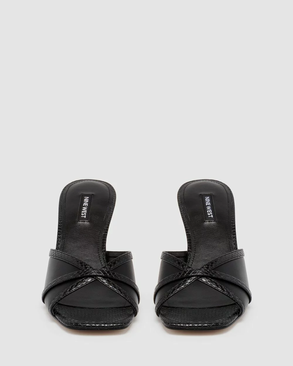 The Nine West Danity Sandal is an on-trend summertime party essential. This peep-toe meets mule design silhouette will keep you in check all night long with its mid height, stable stiletto heel, square toe front and comfortable footbed. Pair with a little black dress and accessorise to suit.