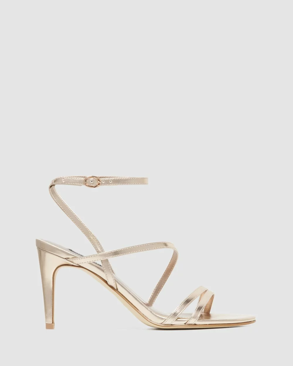 – Heel height: 8.5cm – Soft footbed – Rounded toe – Adjustable buckle – Leather straps across the vamp