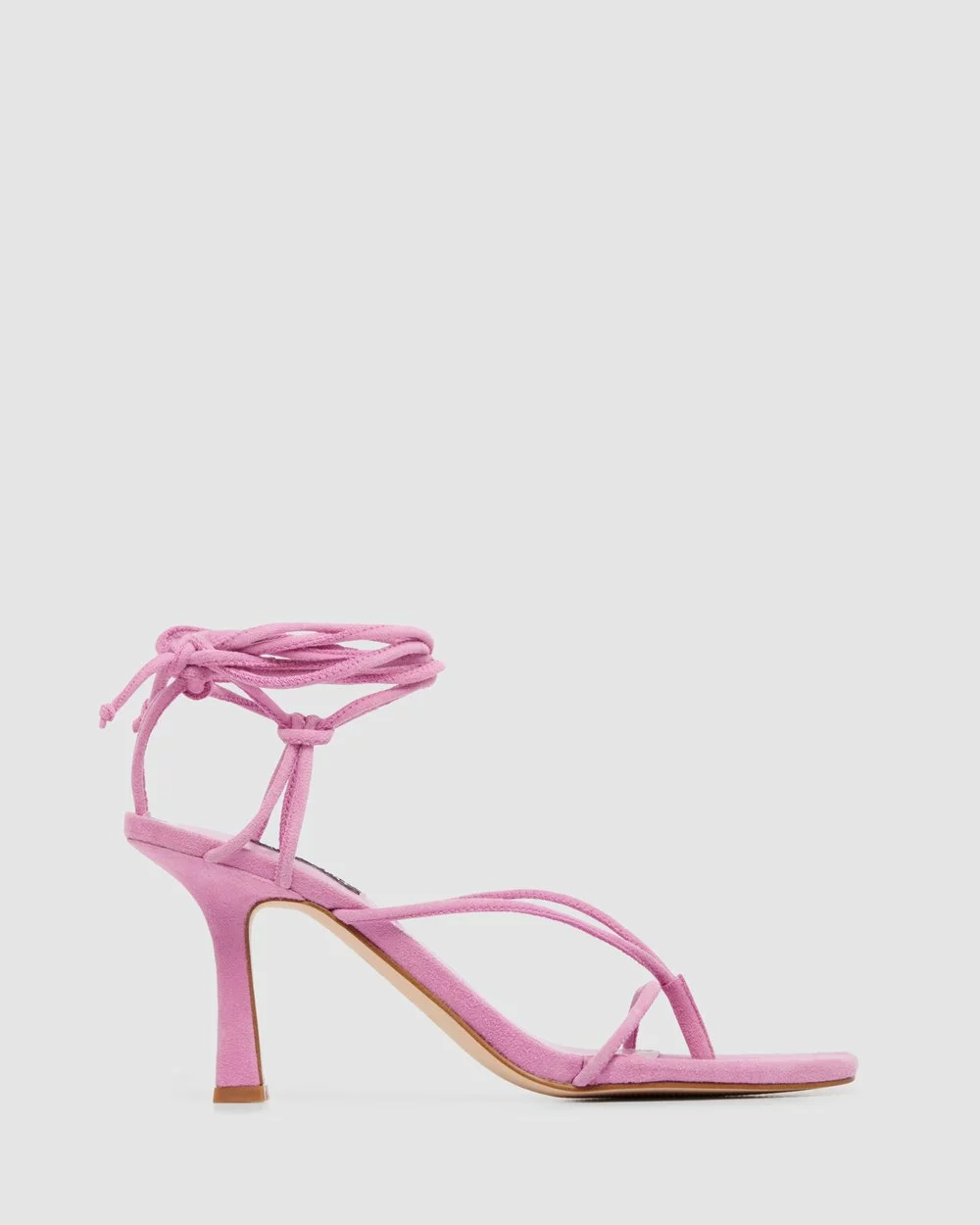 – Heel Height: 8cm- Comfortable Footbed – Ankle Tie Fastening – Square Toe